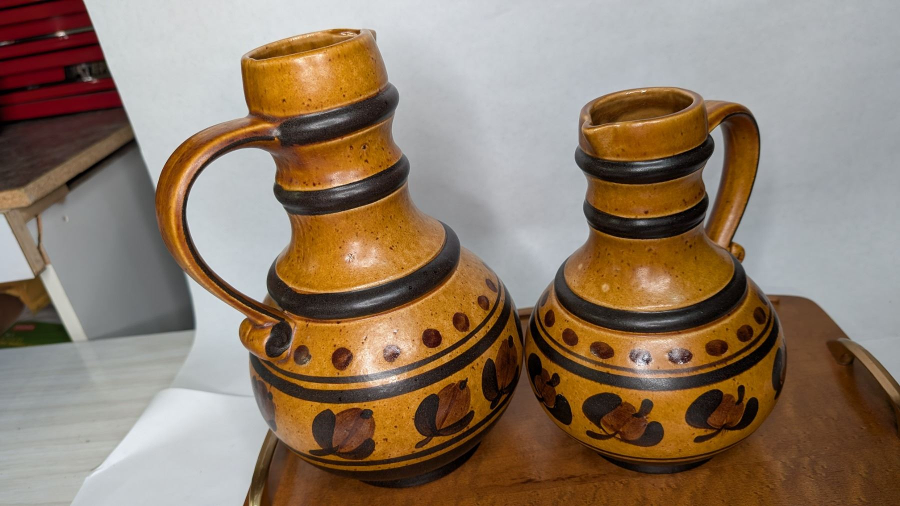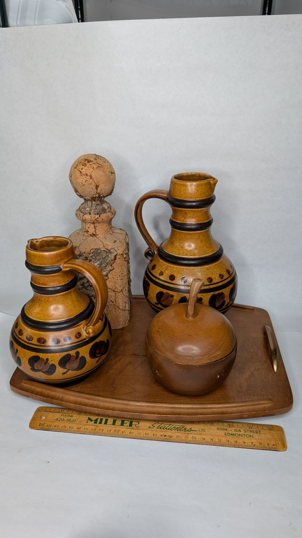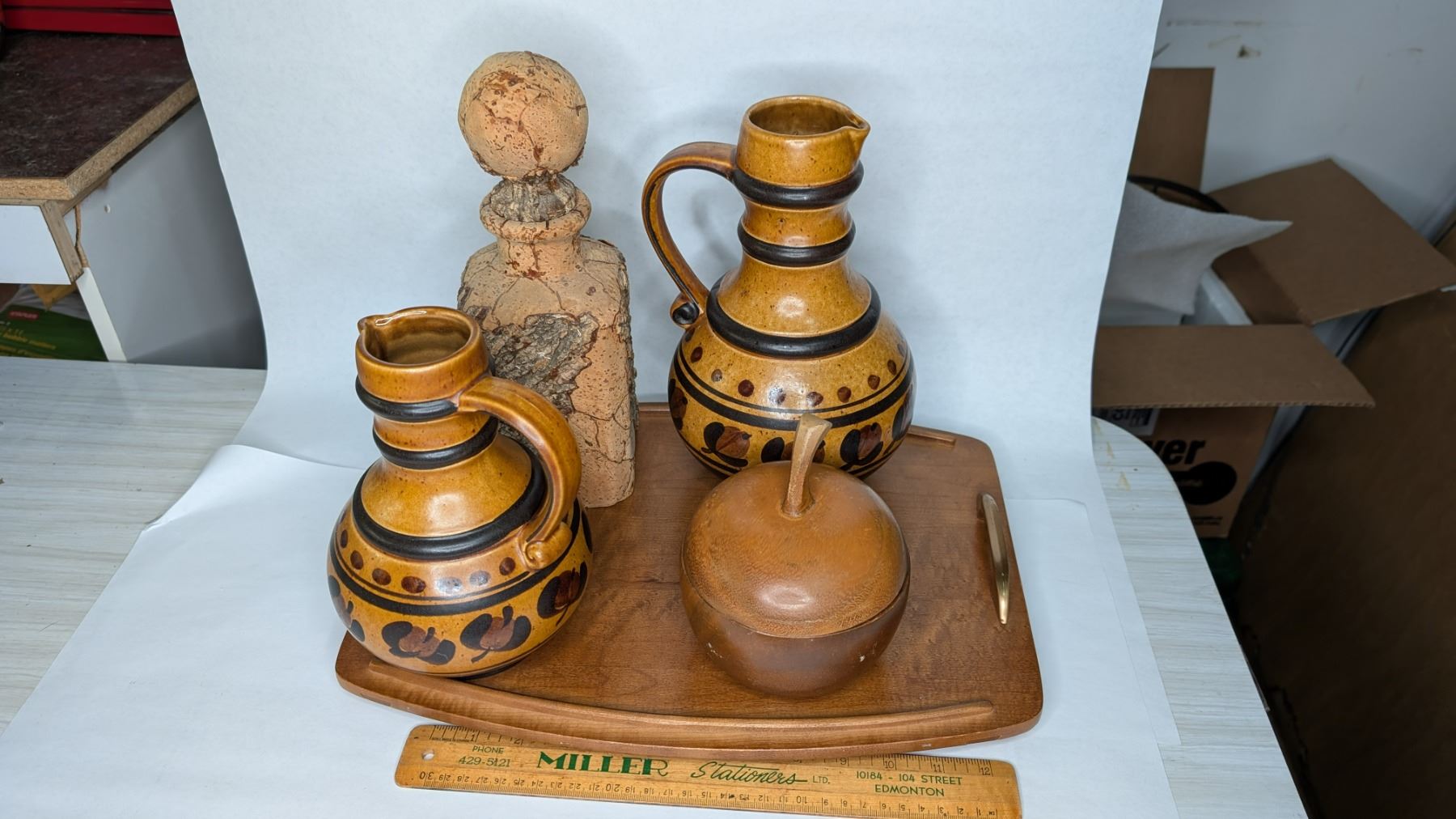 Mid Century Lot German Ewers Italian Decanter Apple and Barbiocraft Tray