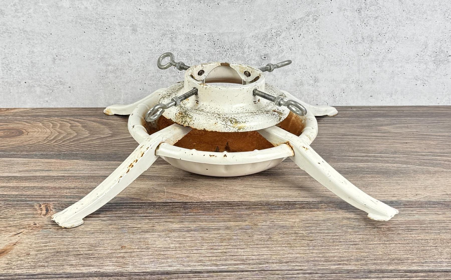 23" toe to toe. Tree opening is 3 3/4" in diameter.