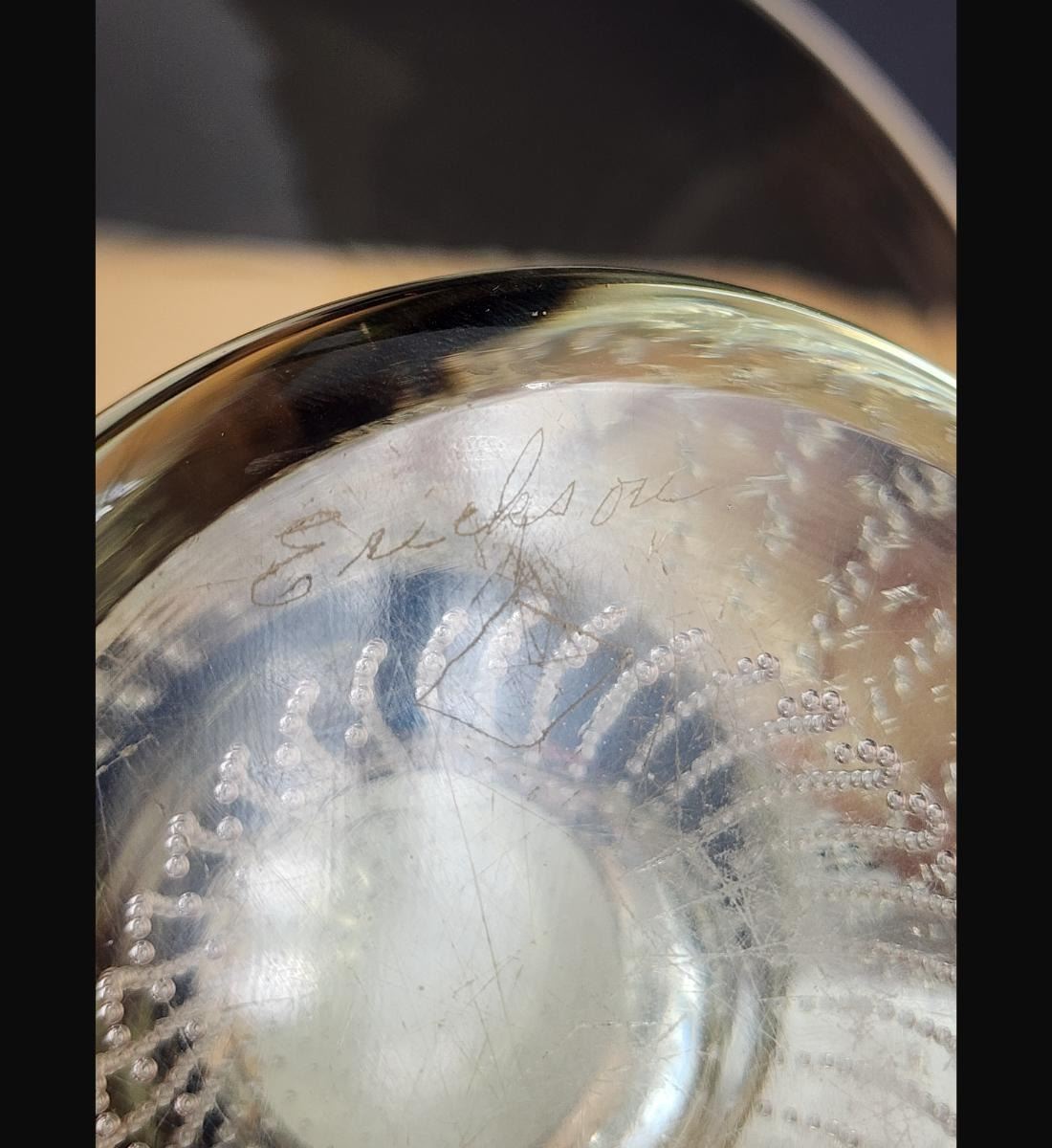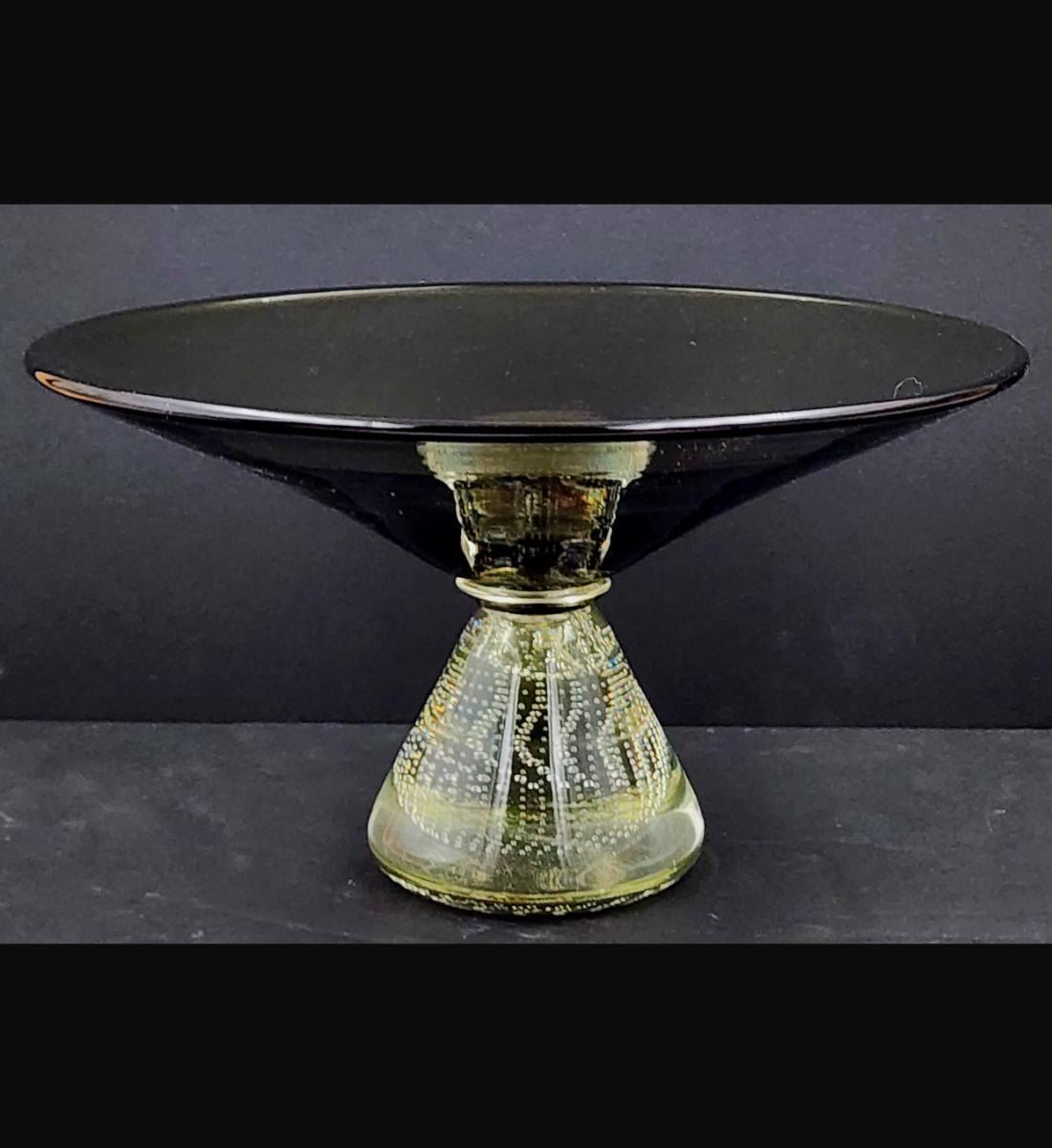 Art Glass Center Bowl Signed Erickson. Measure 7" X 12.5"Provenance: One Person Private Estate Central Florida.