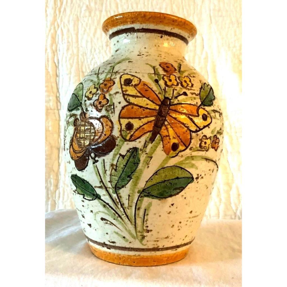 Mid-century modern, Bitossi stoneware for Rosenthal Netter. Made in Italy and attributed to Aldo Londi, based on other similar documented examples. 7 3/4" H X 6" W.