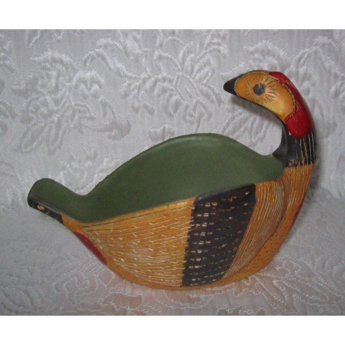Mid Century Modern, Bitossi Italian ceramic stoneware small serving bowl, in the form of a pheasant bird. Marked "95/ 607 Italy" on bottom. 6" L X 3 1/2" W.