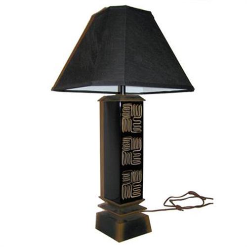 This vintage table lamp features a beautiful square ceramic pedestal with polished black glaze and gold and white abstract decoration. (Color seen on the left side of the closeup image are reflections.) Fine working order. Designer and maker are unknown. Measures 30.5" high and base measures 6" wide and deep. Black paper shade may be original to the lamp. This lamp resides on the upper west side of Manhattan ( New York city ) and may be seen by appointment. Thanks for visiting. Please let us know if you have any questions or comments.