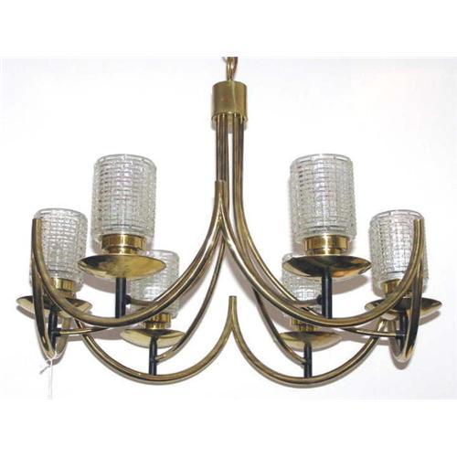 <tr><td>Title:Mid-Century Modern Brass & Glass Chandelier</td></tr>