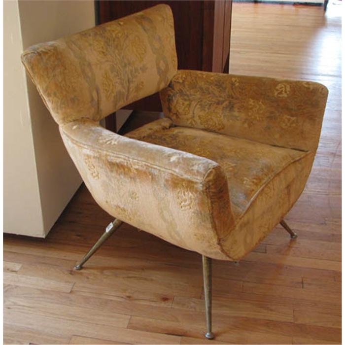Title: Mid Century Modern Brass Legs Upholstered Club Chair