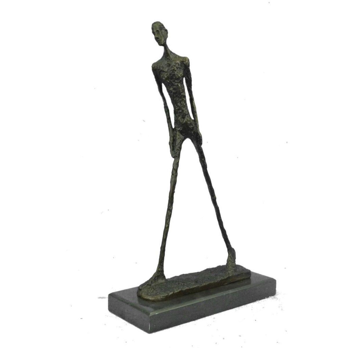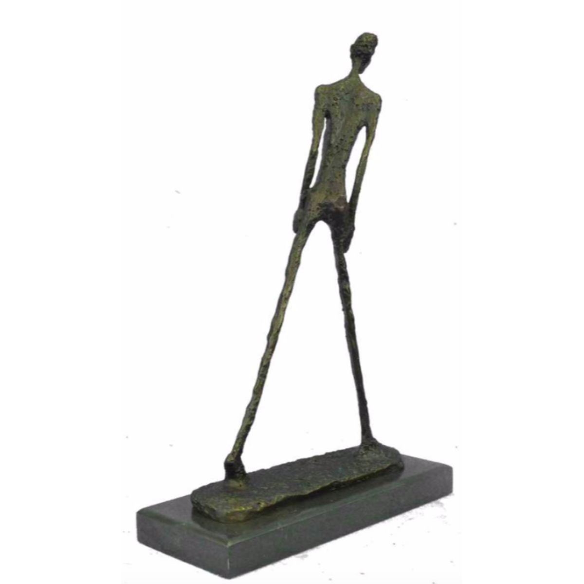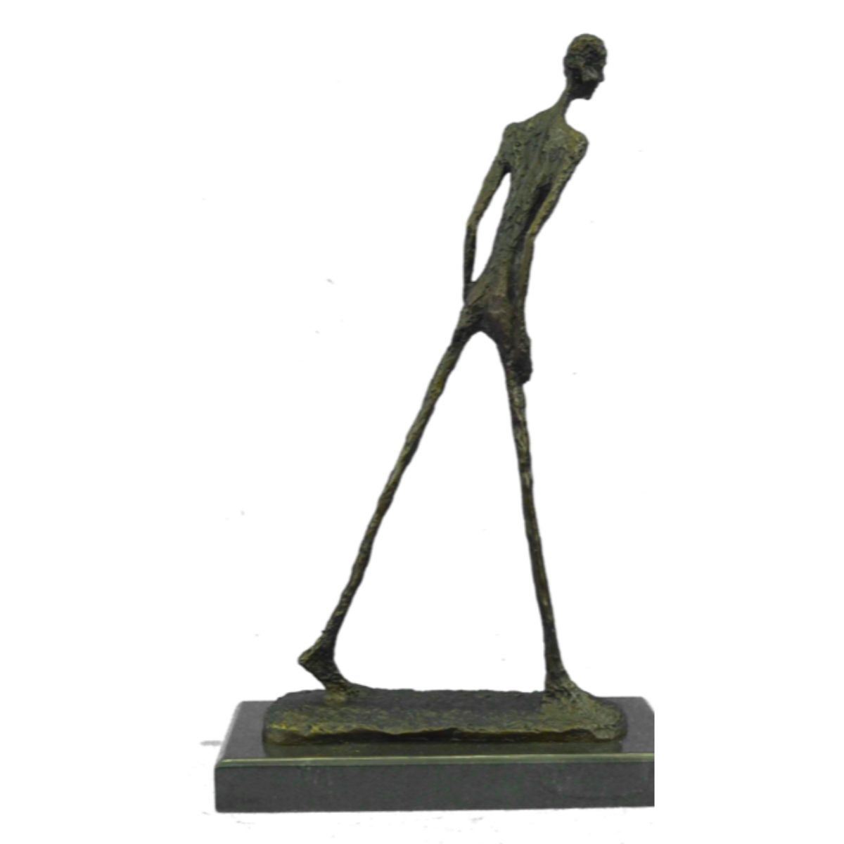 Mid-century Modern Brutalist style bronze sculpture of a man walking. Lost wax casting bronze mounted on marble base. 10" X 18". 9 lbs.
