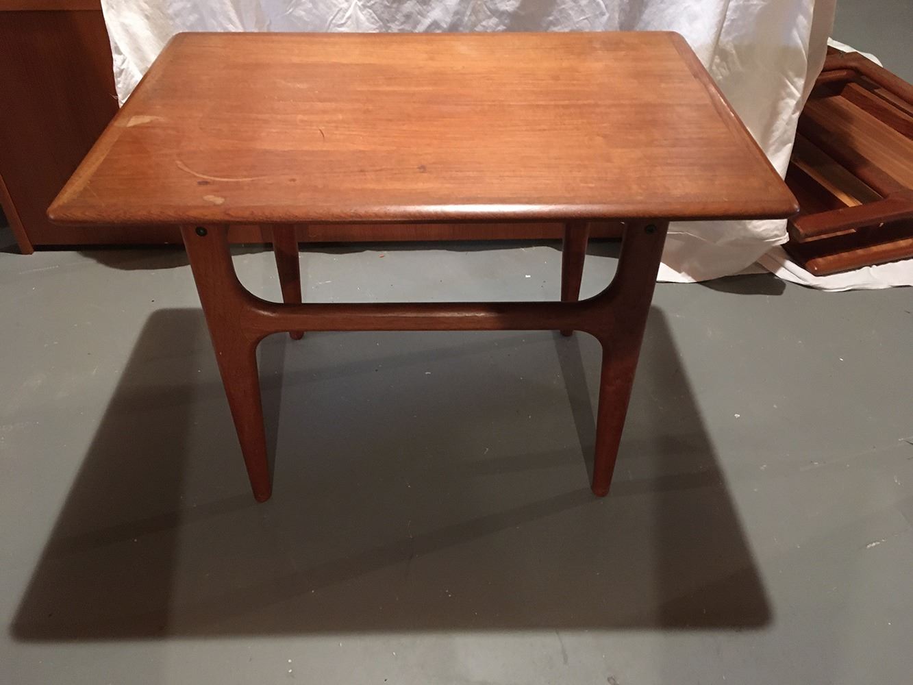 Mid-Century Modern Danish End Table, Trian, Made in Denmark, measures approx 29 inches x 20.5 inches x 20.5 inches.