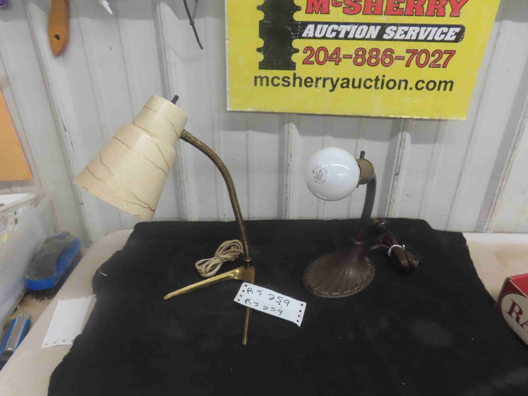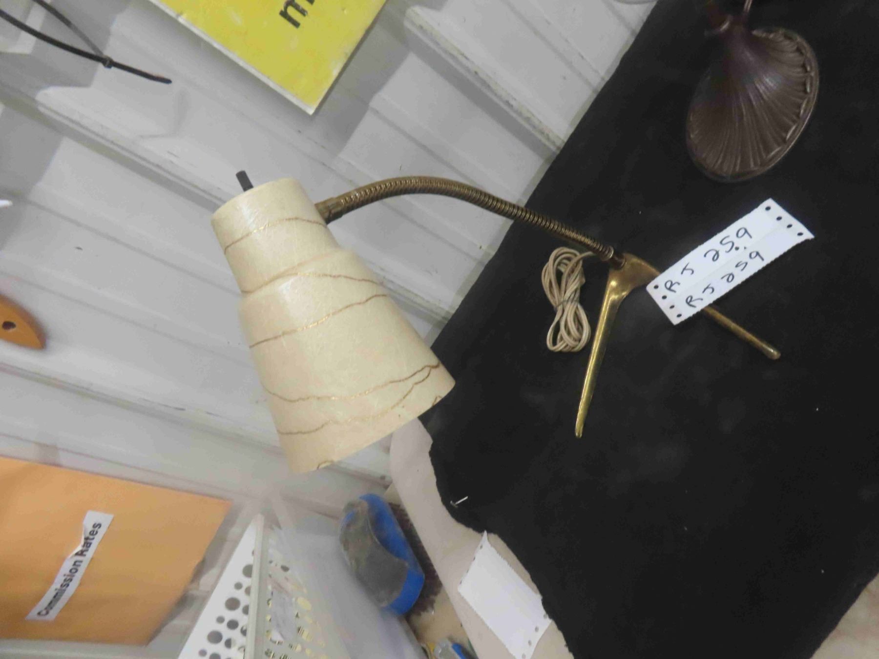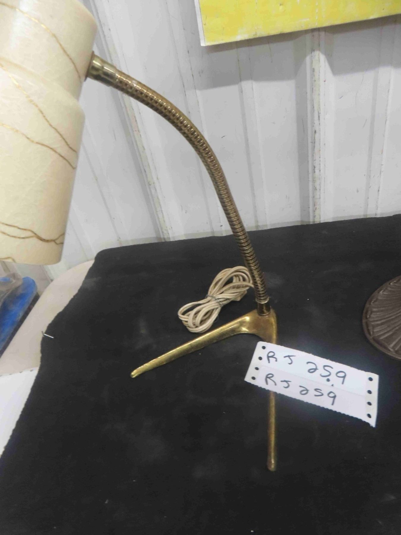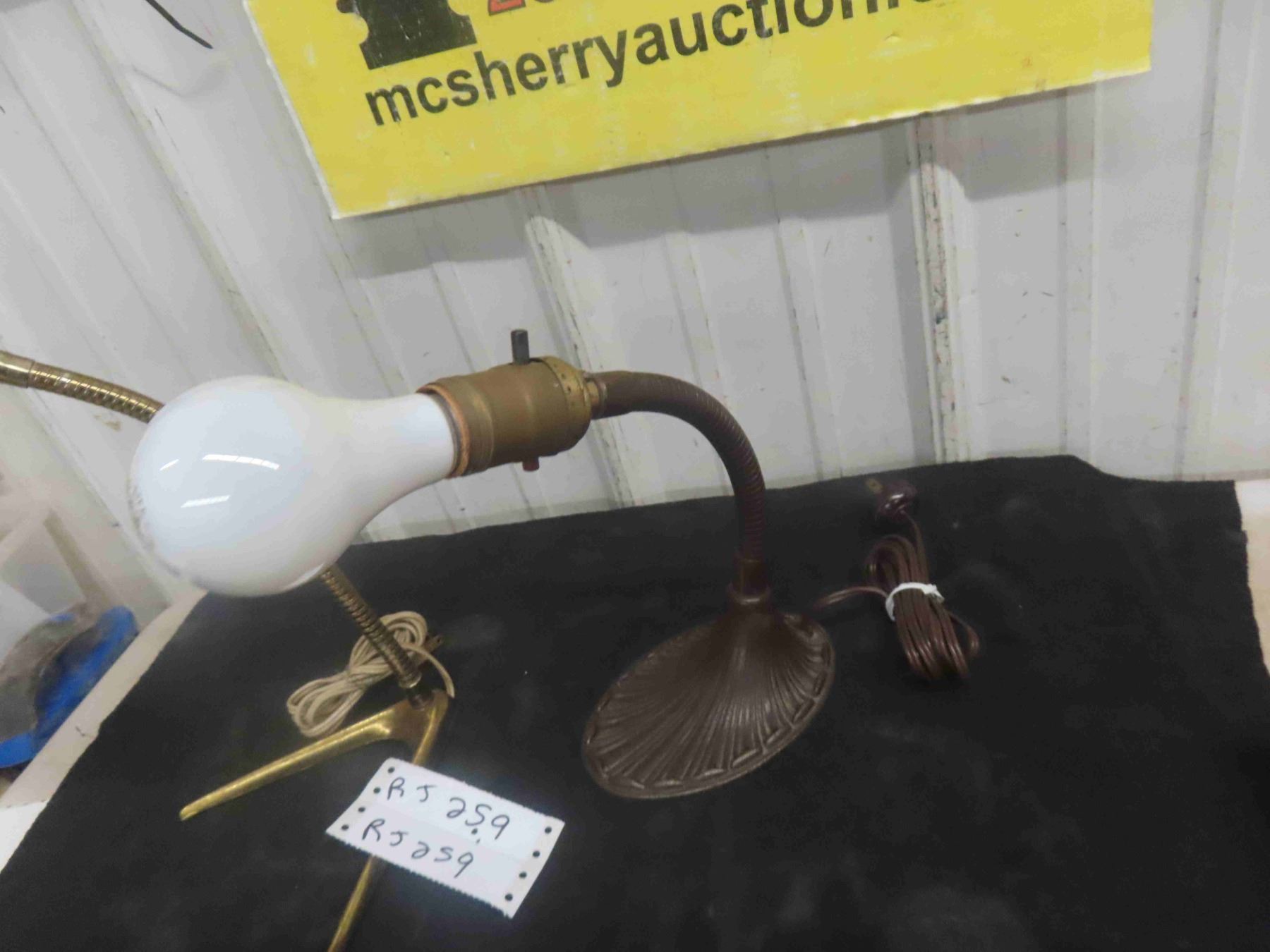 Mid Century Modern Desk Lamp with Fiberglass Original Shade, Antique Spelter Goose Neck Lamp.