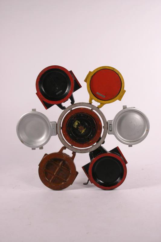 Made by Alex Chronis by his hands 43dia x 3d inches, made of old art deco wood producing samples, circa 1920 original vintage condition