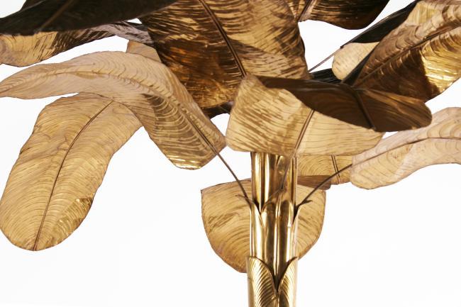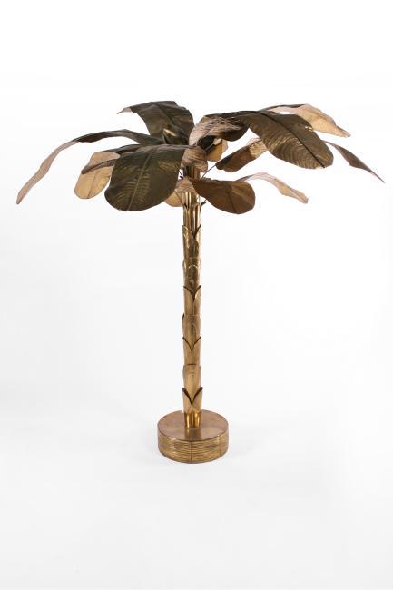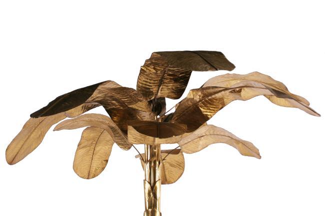 78h x 60dia, 18dia base inches, light brass leaves and base, perfect