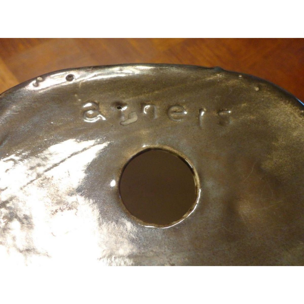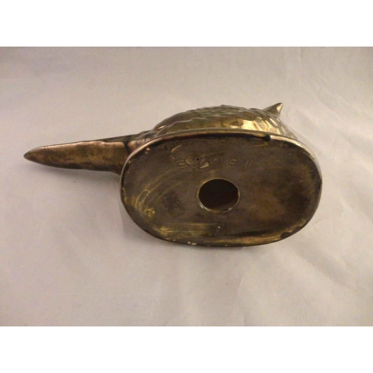 Mid Century modern ceramic, bronzed lusterware hunting figurine, table centerpiece, in the form of a pheasant bird. Signed "arners" on the base. 11" L X 6 1/2" H X 3 3/4' W.