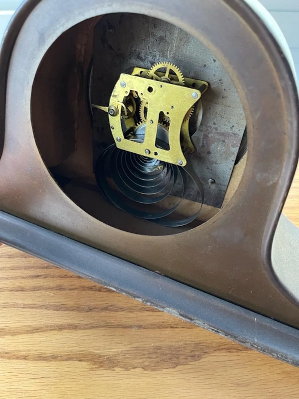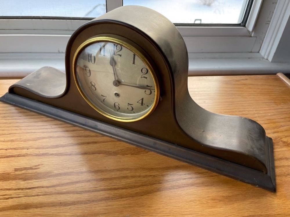 Mid-Century Modern Mantel clock, unusual metal case, made in USA, from the lifetime collection