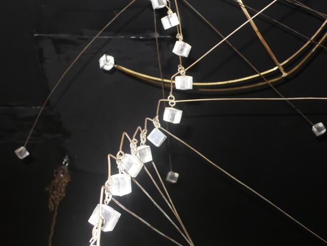 8 feet long, made og solid brass and lucite blocks. Made in Mexico in the 1950's.