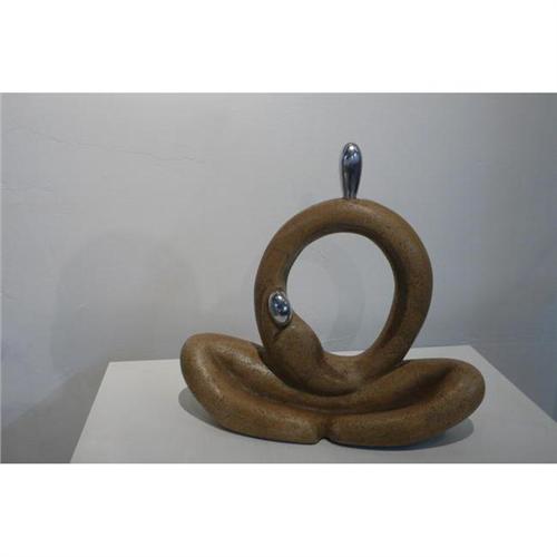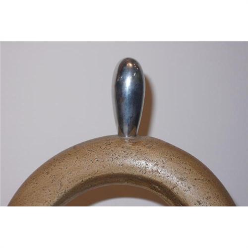 Mid Century Modern Ceramic object with aluminum heads " Mother and Child" in perfect condition, 13h x 12w inches