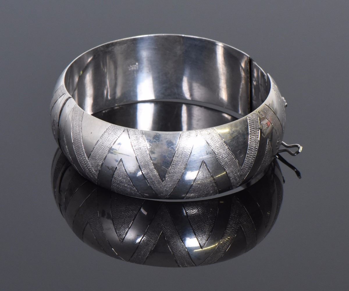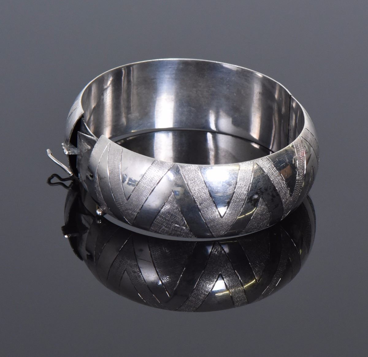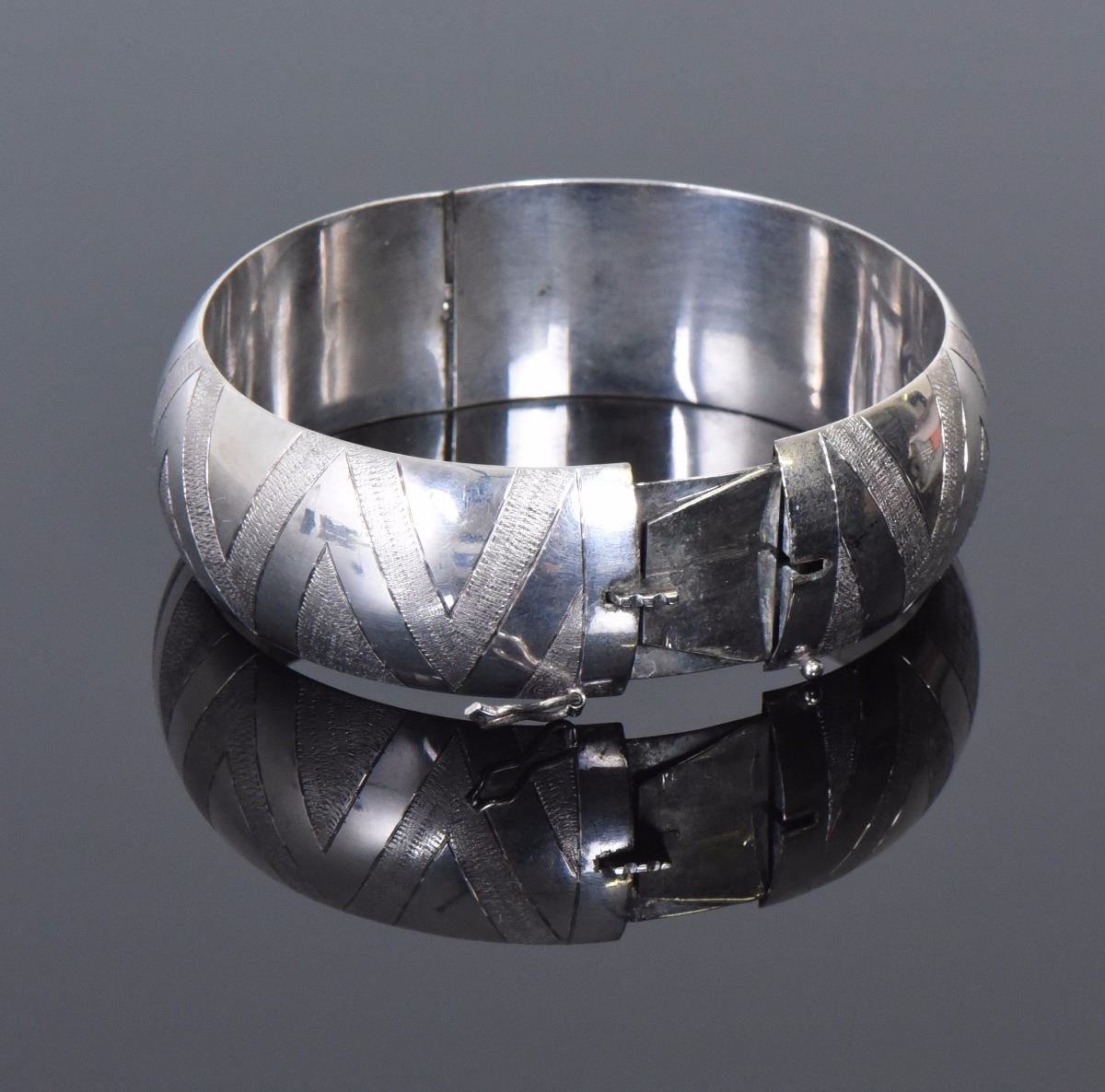 Mid Century Modern Sterling Silver Bracelet. Estimated more than 50 yrs old. 925 Sterling Silver consisting of 92.5% silver and 7.5% copper. Tested Positive using Nitric Acid Chemical Scratch Test, Cloth Rub Test, Smell Test, and Magnet Test. No Markings. The reason silver needs to be combined with other metals is that it is very difficult to make great designs with just pure silver, which is very soft and malleable. A bit of hardness has to be introduced by adding other metals such as copper. That is why jewelers are capable of making the most intricate an complex designs with 925 Sterling Silver. Silver is one of the most valuable elements next to gold. Mexico is the leading producer of sliver, followed by the United States, Canada, Australia, Spain, Peru, and Russia. Many countries do not require their precious metal items to be stamped and therefore we test to ensure we accurately represent the product. Size: See Ruler Photo. (Photos Represent The Condition Of The Lot.)