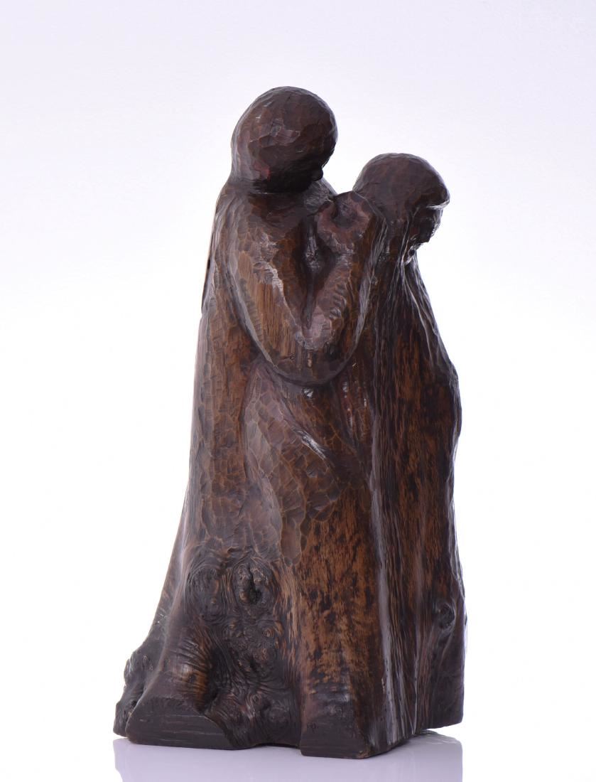 Mid Century Modern Tree Stump Carving Of Two Lovers Melded Together As One. Very Heavy Solid Wood. Estimated more than 50 yrs old. Modern art includes artistic work produced during the 1860s to the 1970s, and denotes the style and philosophy of the art produced during that era. Modern artists experimented with new ways of seeing and with fresh ideas about the nature of materials and functions of art. A tendency away from the narrative, which was characteristic for the traditional arts, toward abstraction is characteristic of much modern art. Modern art begins with the heritage of painters like Vincent van Gogh, Paul Cezanne, Paul Gauguin, Georges Seurat and Henri de Toulouse Lautrec all of whom were essential for the development of modern art. (Wikipedia) Size: See Ruler Photo. (Photos Represent The Condition Of The Lot.)