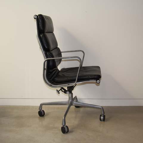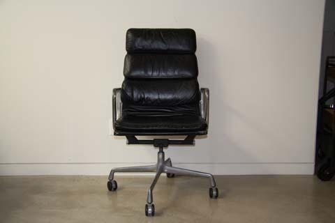 black leather executive chair with alumminum arms and swivel base. n/a in good working condition but the leather is worn in places and the aluminum is in bad condition on the arms. Material / Technique: black leather with alumminum