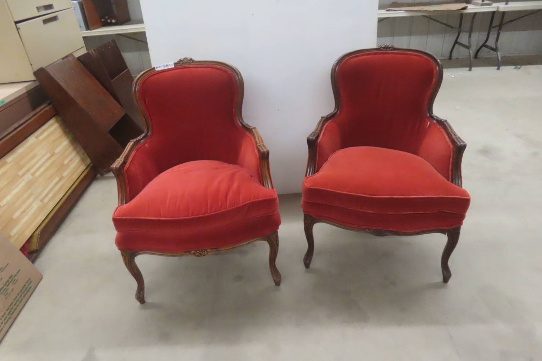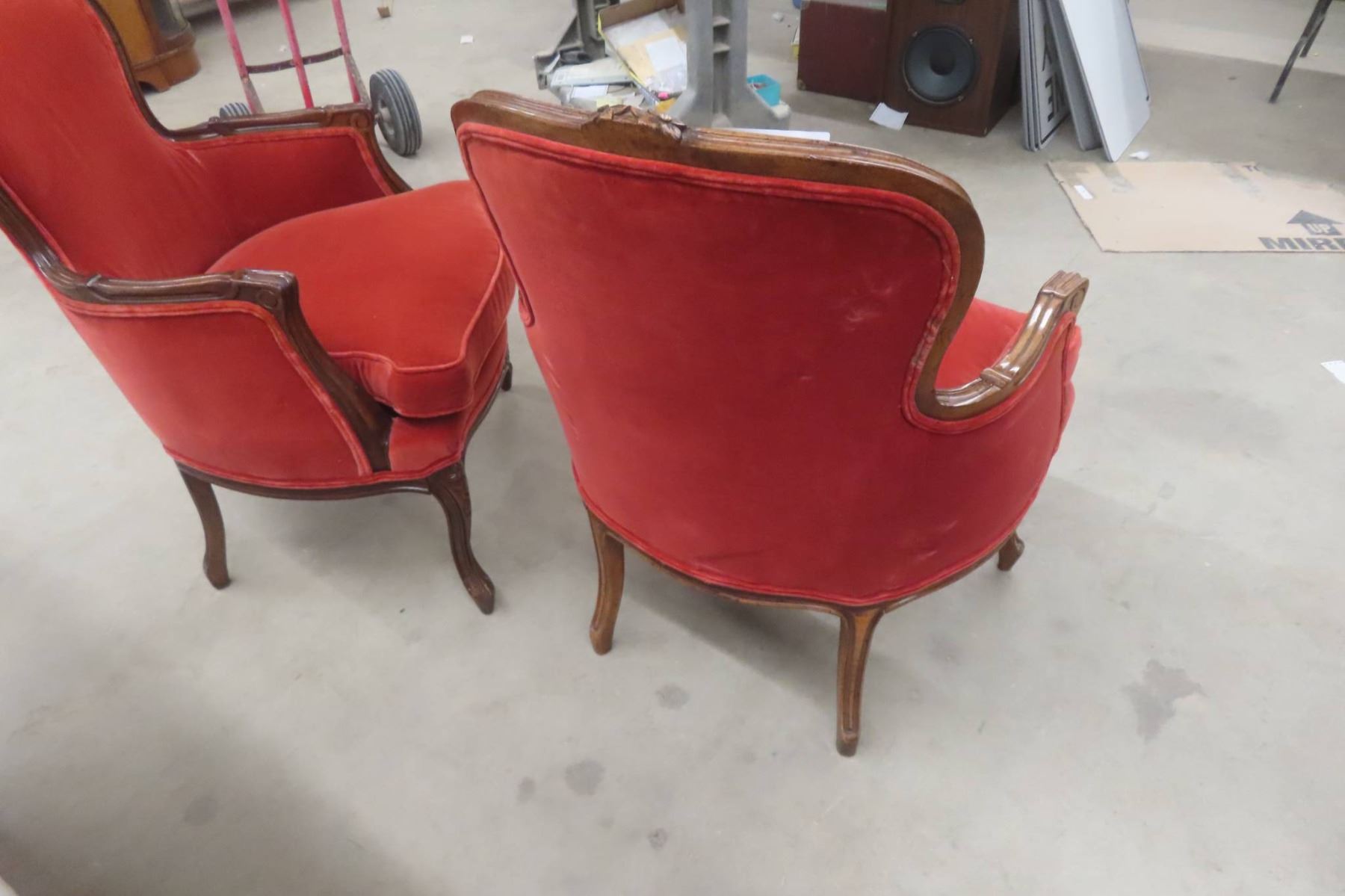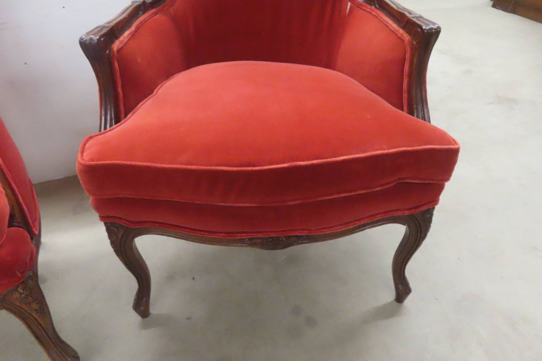Mid Century Pair Matching Unique Louis XV Armchairs With Carved Wood Frames