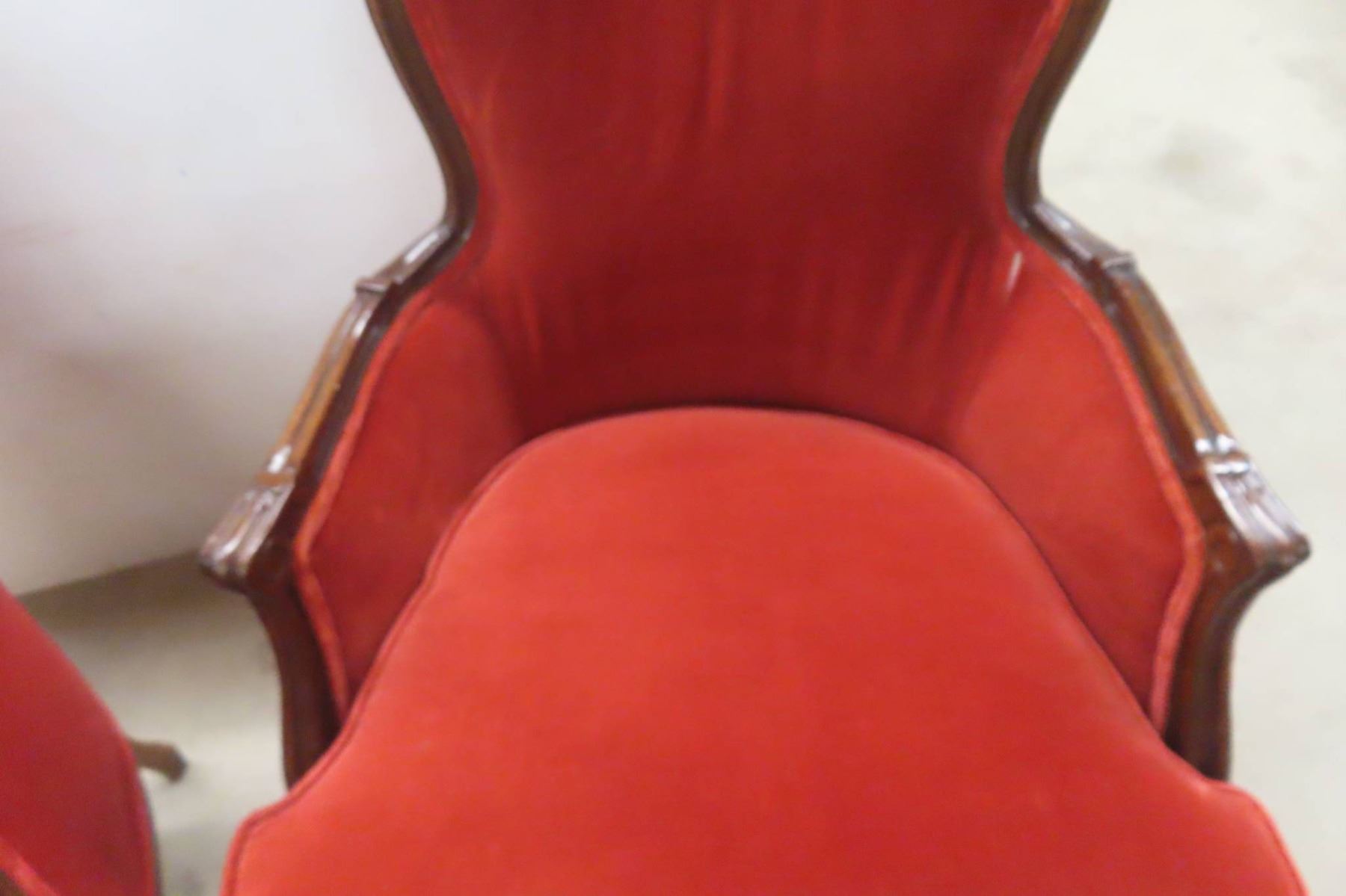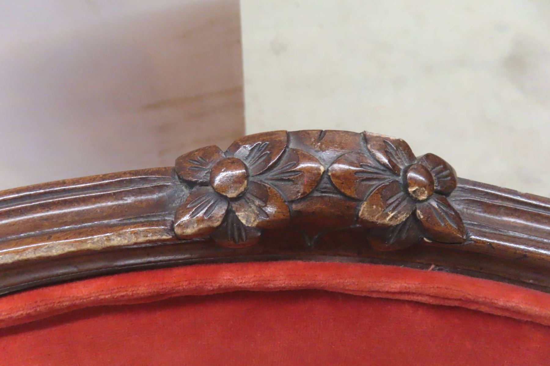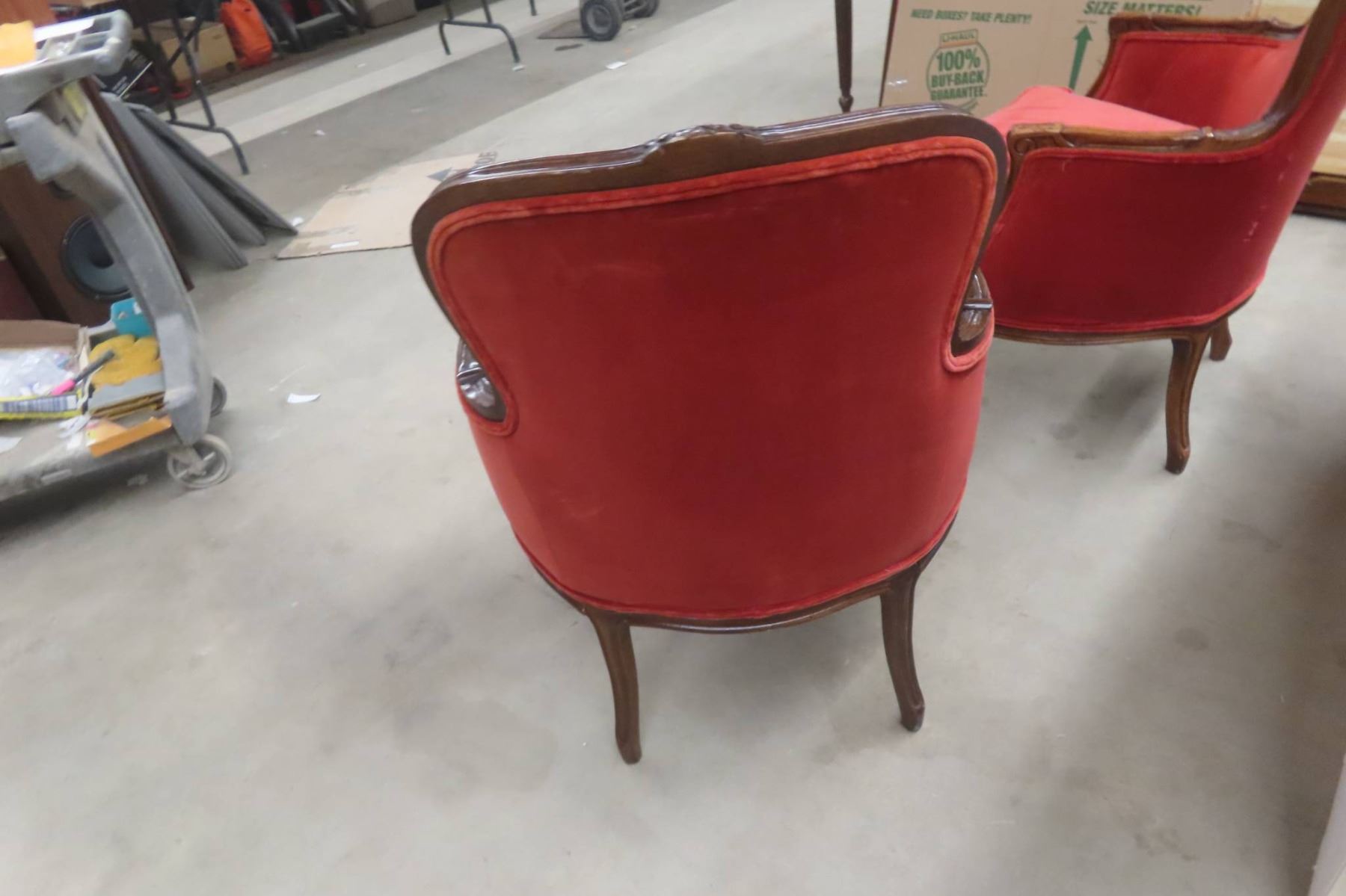 Mid Century Pair Matching Unique Louis XV Armchairs With Carved Wood Frames