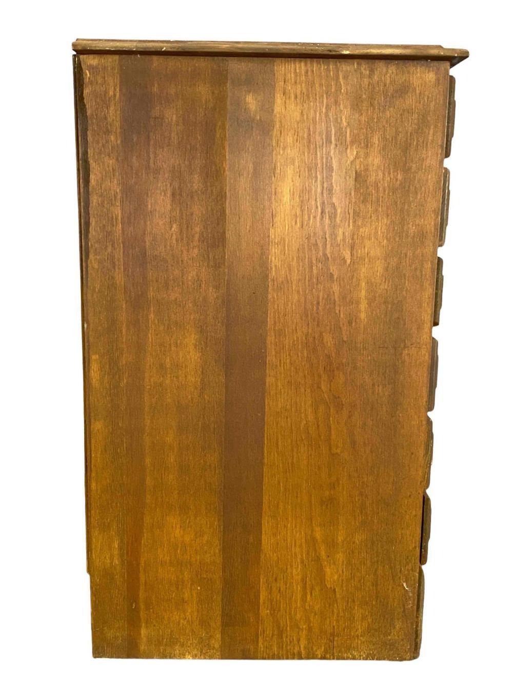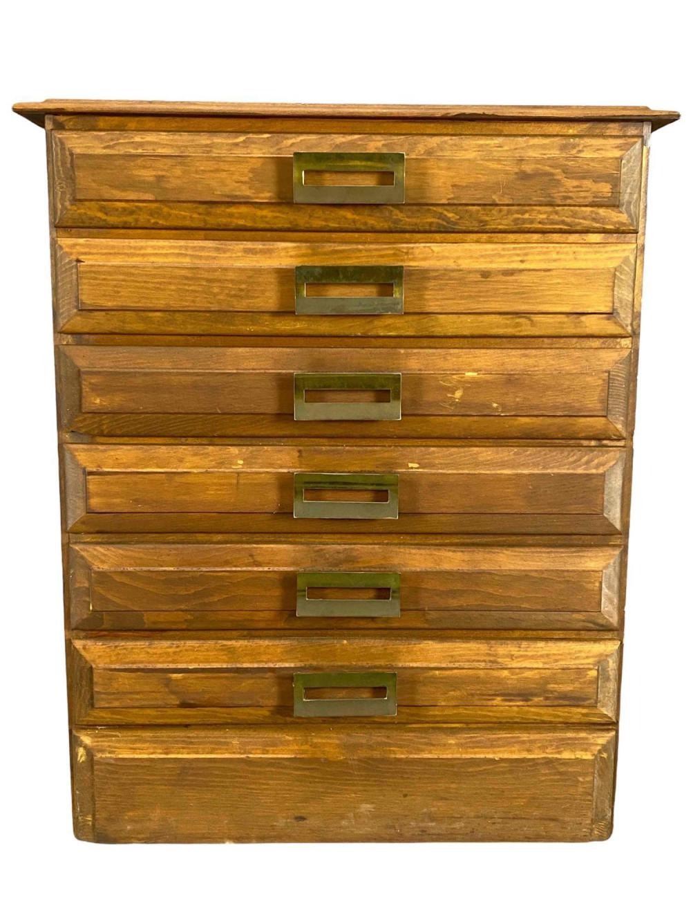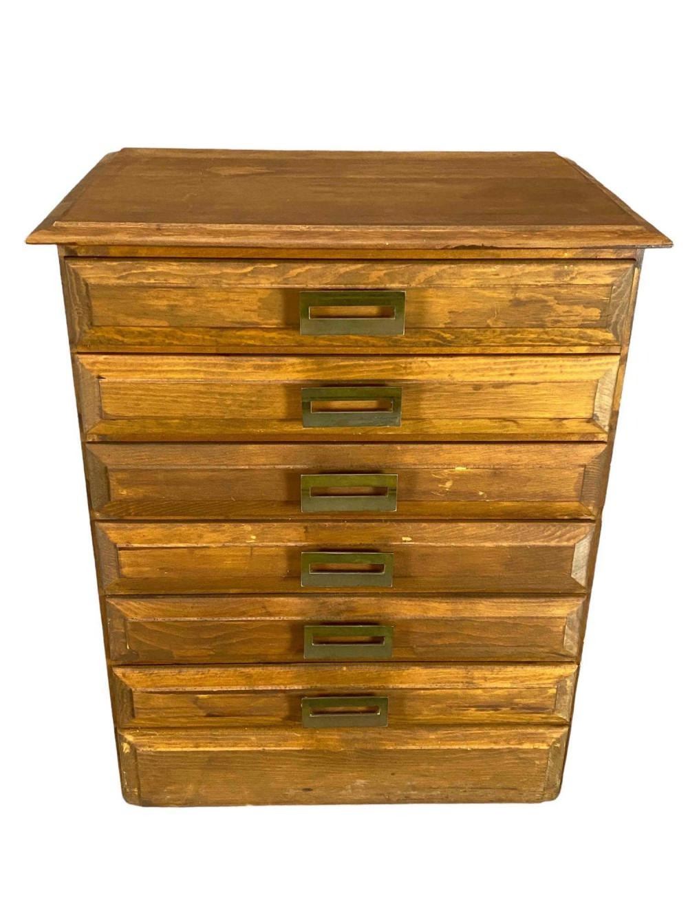 Mid Century Pine Flat File Cabinet. Perfect for a jewelry box. Approximately 29.125H x 24.375W x 17.5D in.