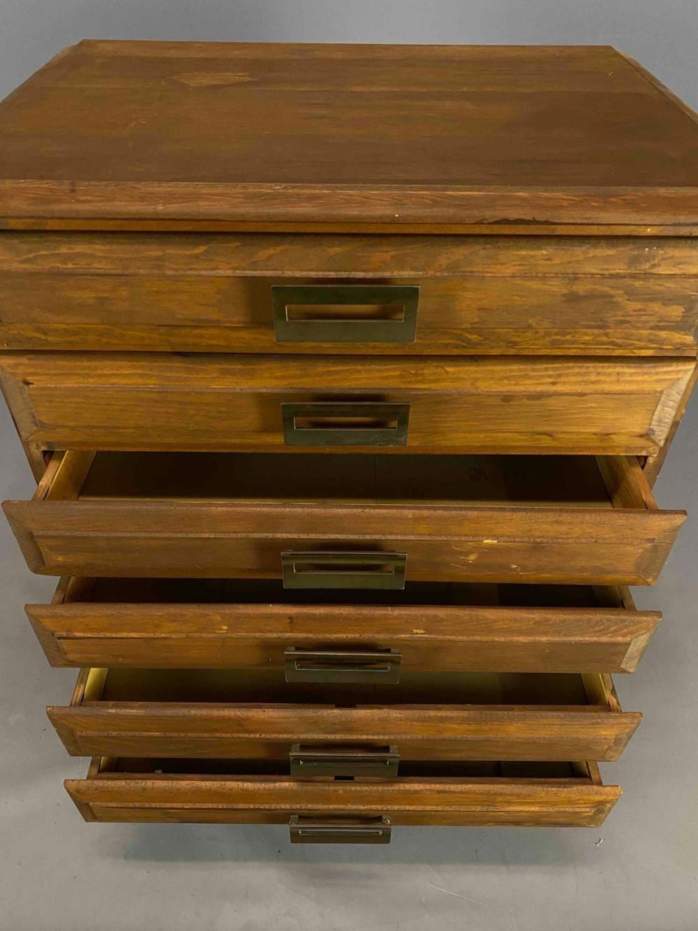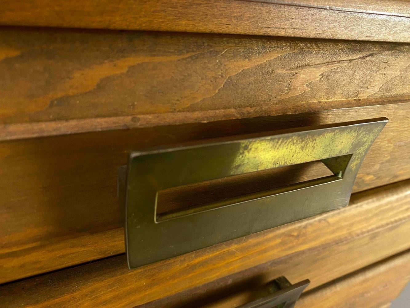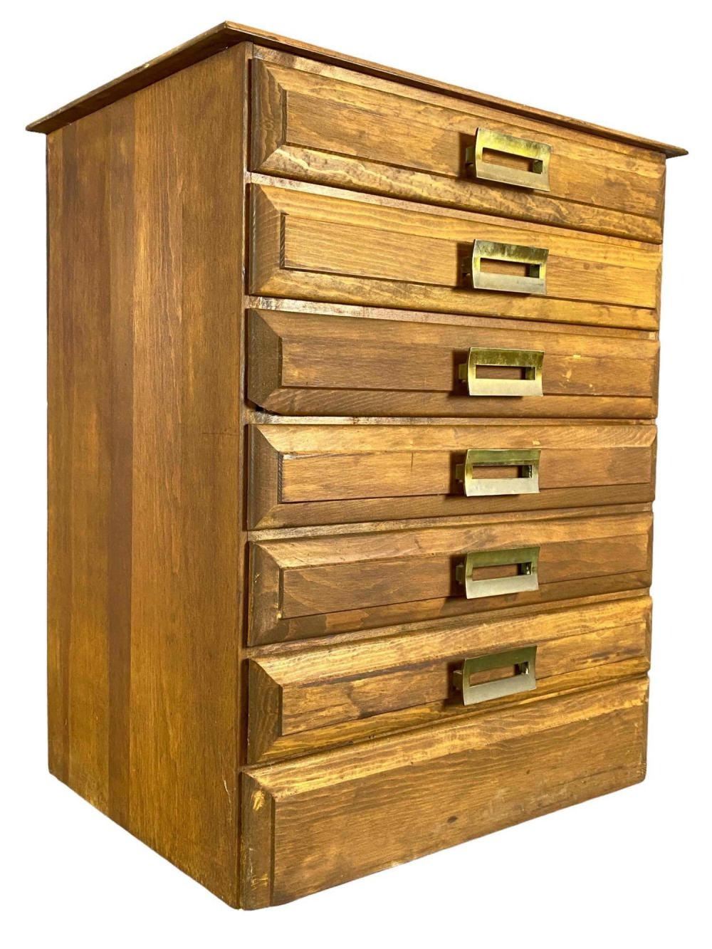Mid Century Pine Flat File Cabinet. Perfect for a jewelry box. Approximately 29.125H x 24.375W x 17.5D in.