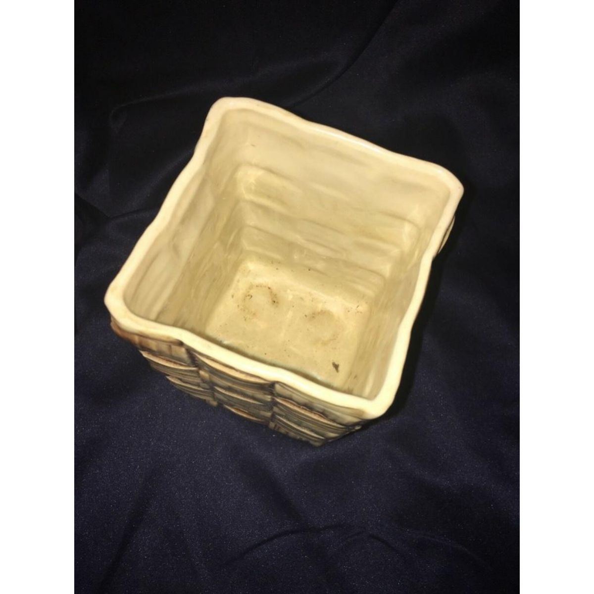 Mid-Century Shawnee USA basket weave, design pottery vase. "Shawnee USA, 842" on bottom. 7 1/2" H X 4 1/2" X 4 1/2".