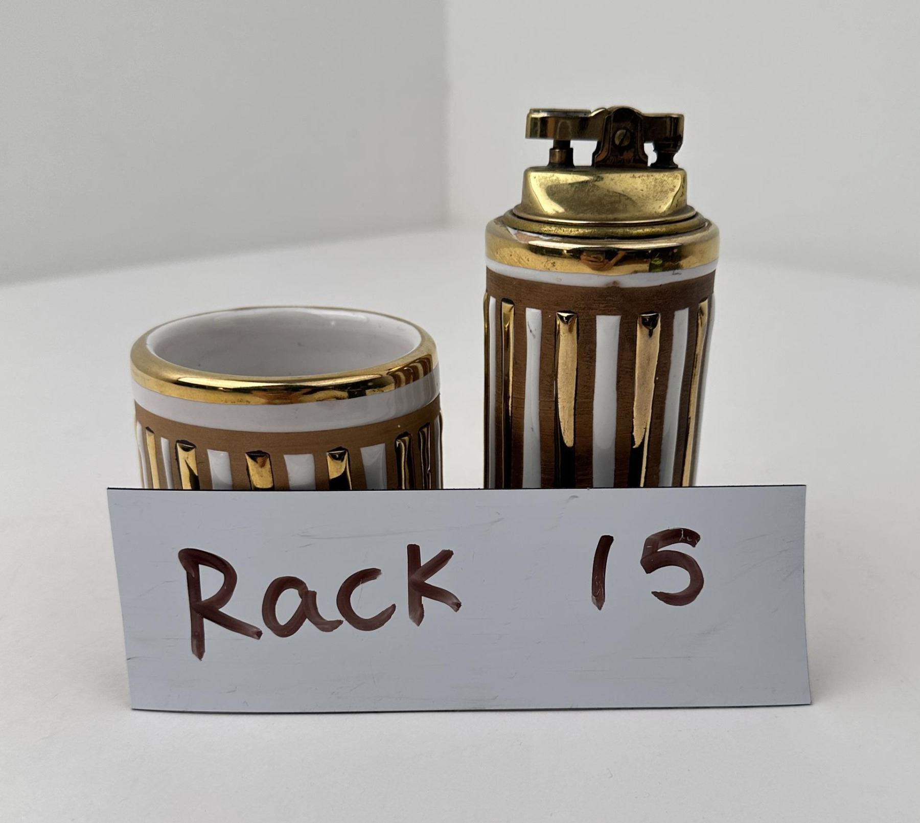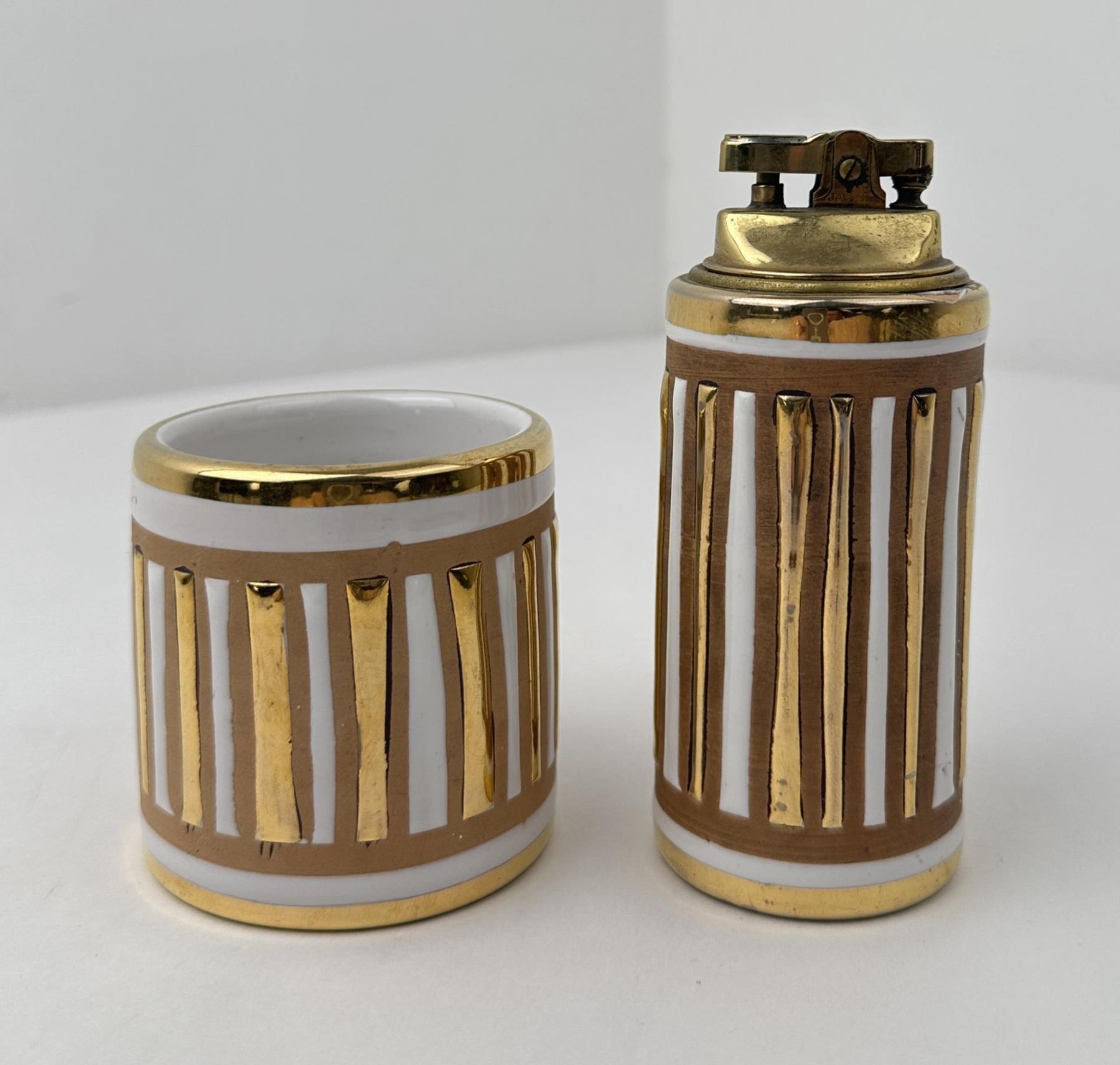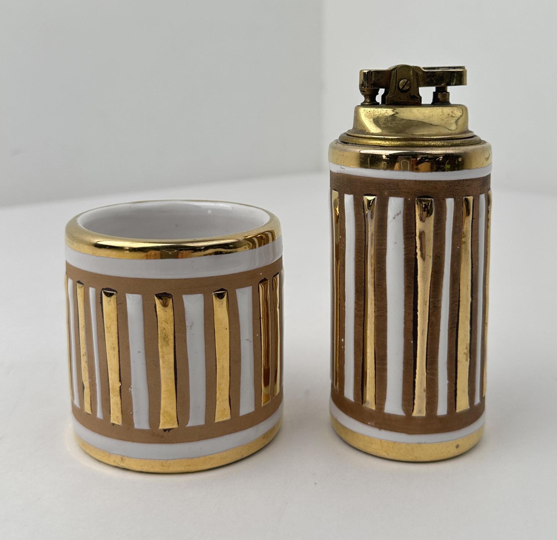 Cigarette holder is 2 3/4" tall and lighter is 5" tall