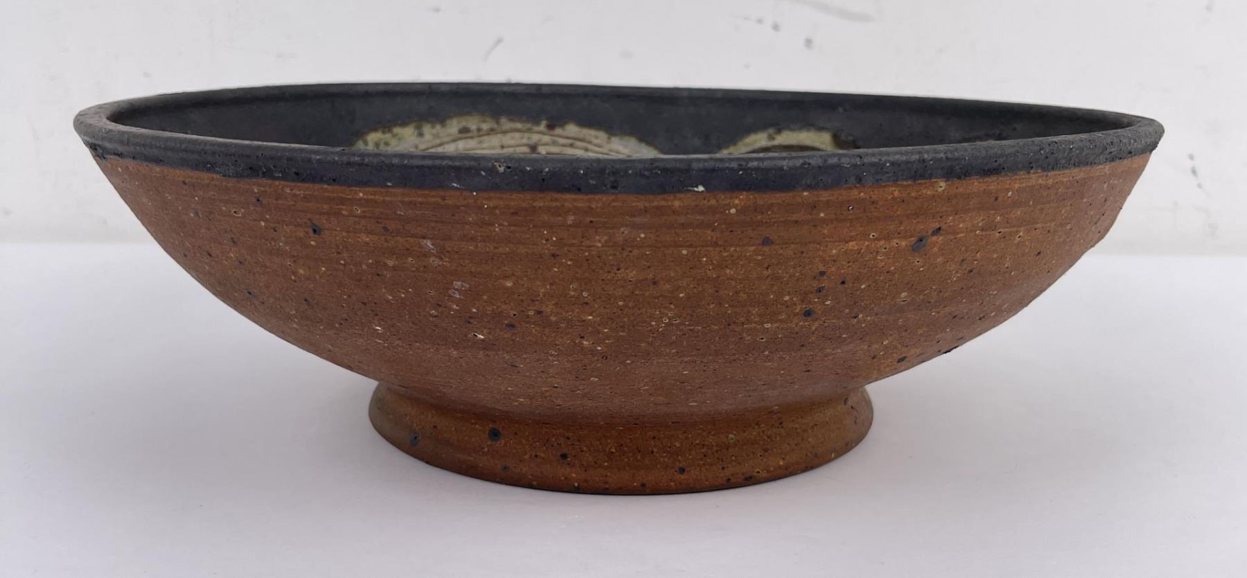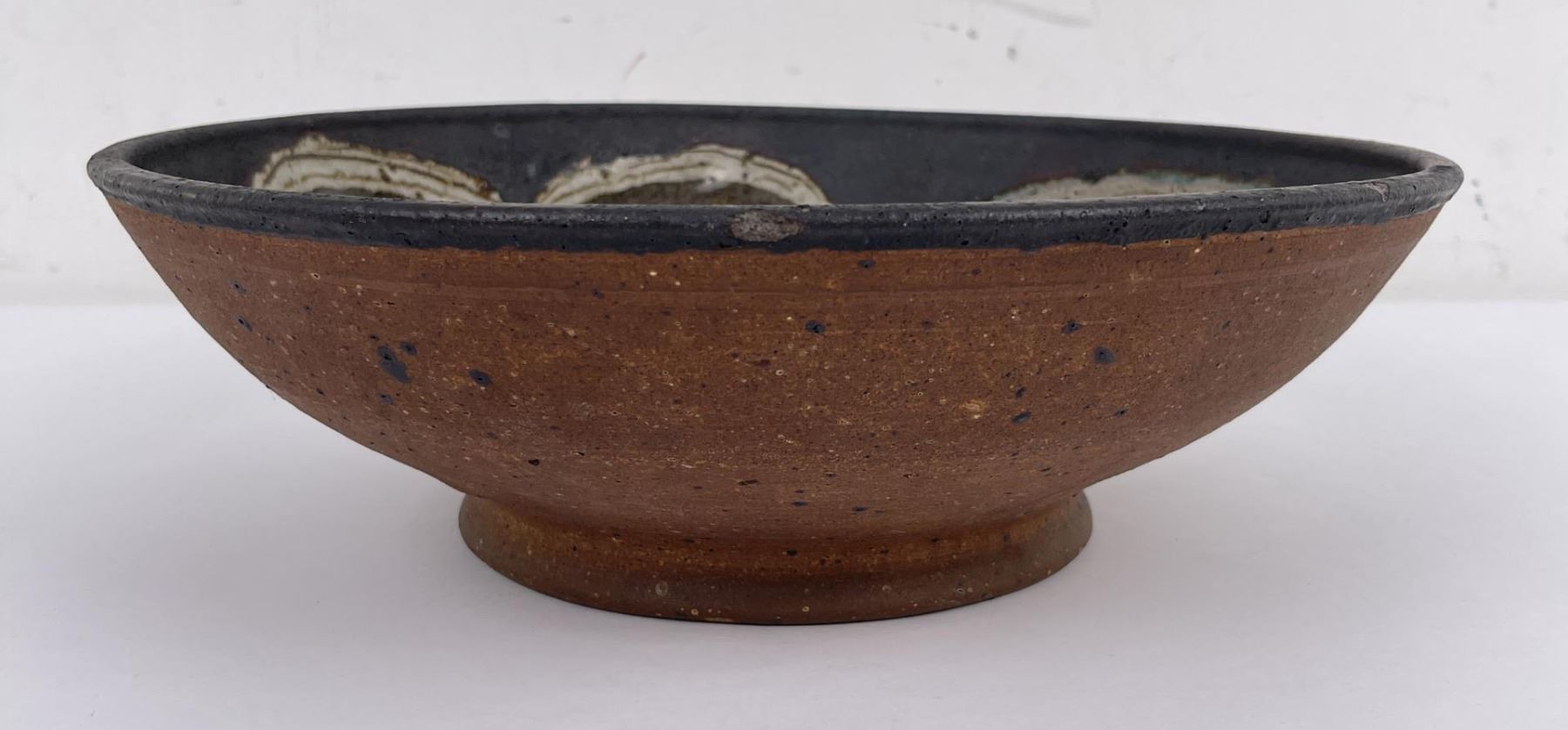 Chip marked and signed as shown. well made. 14 1/8" diameter. 4 1/2" tall.