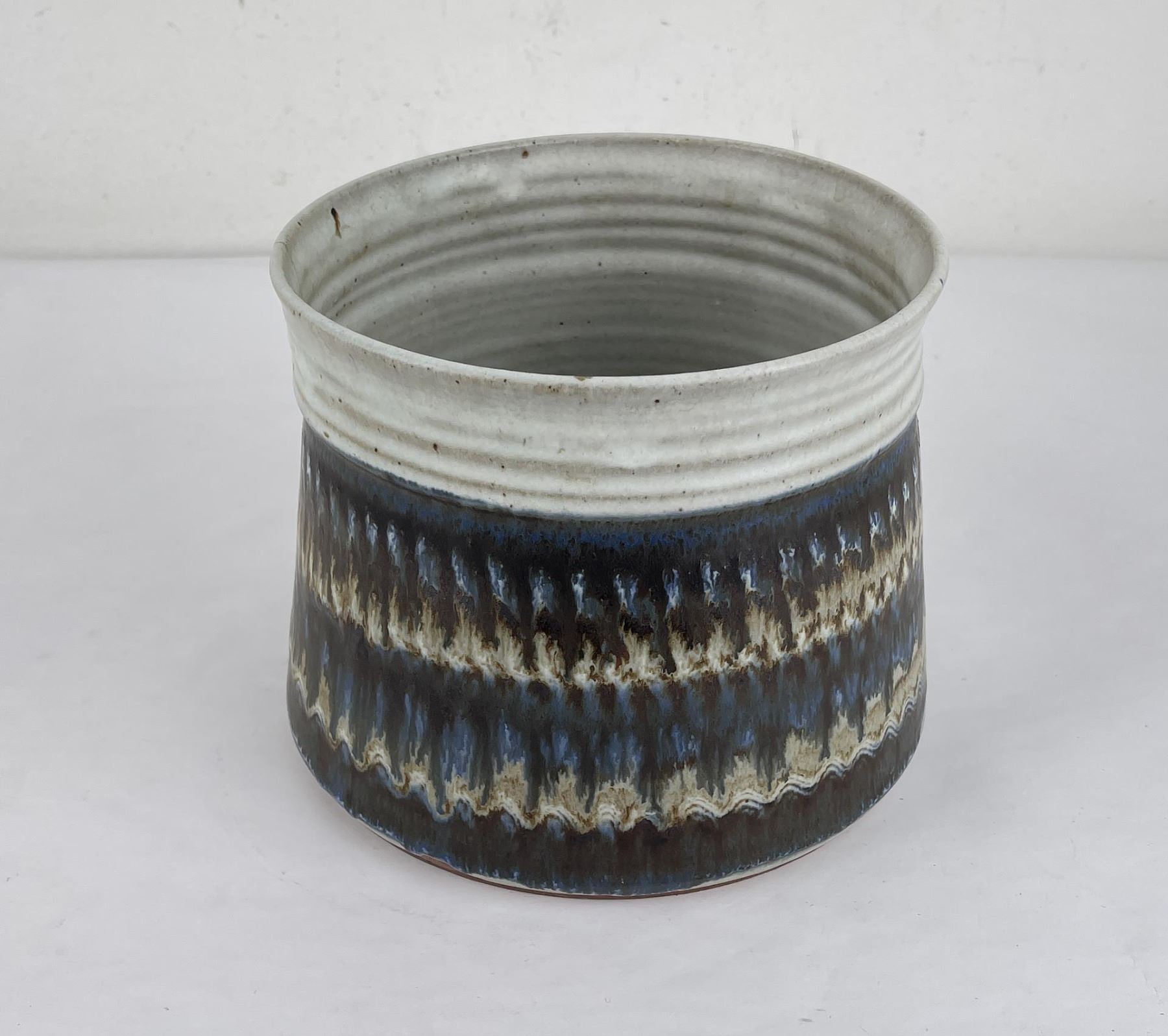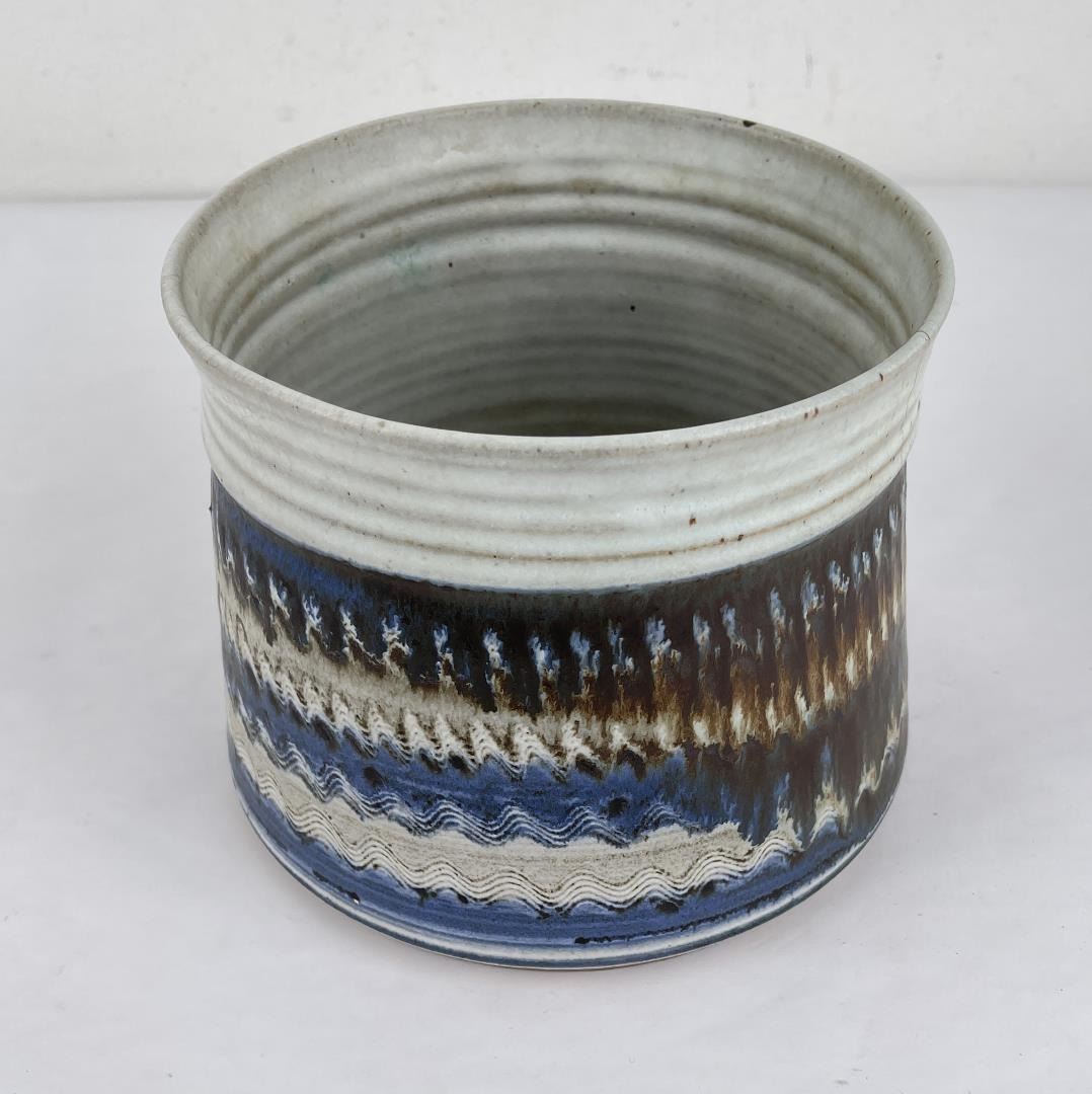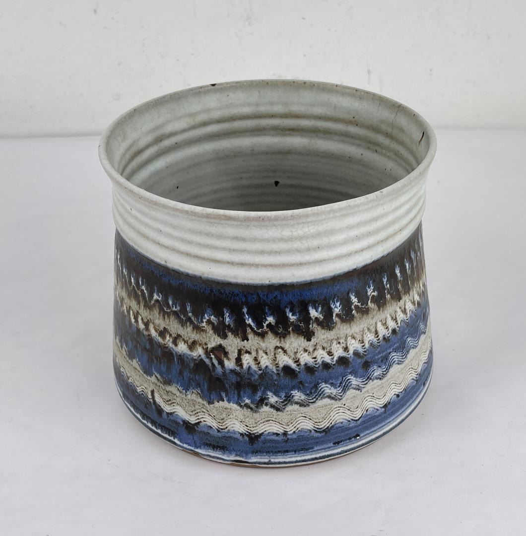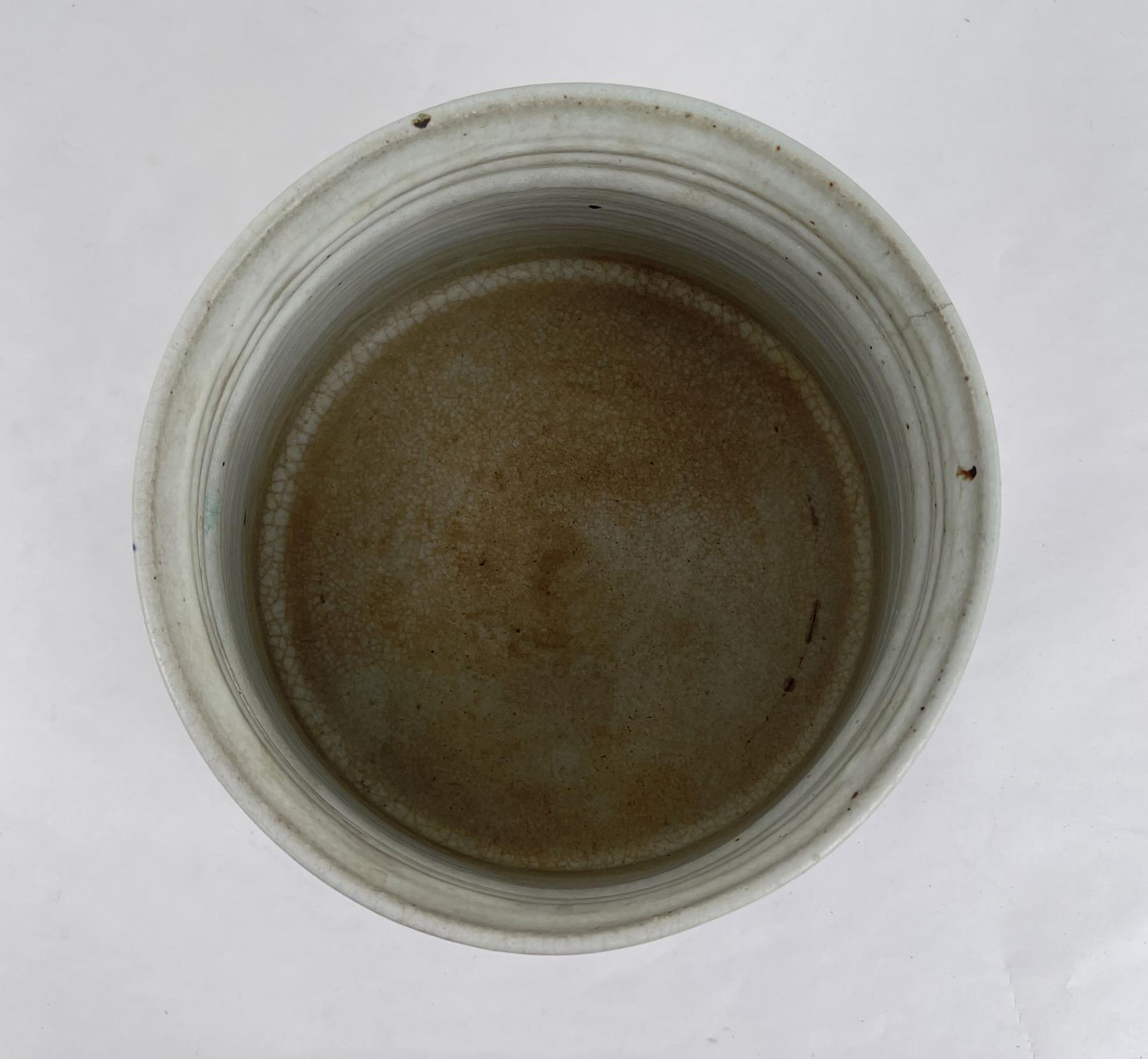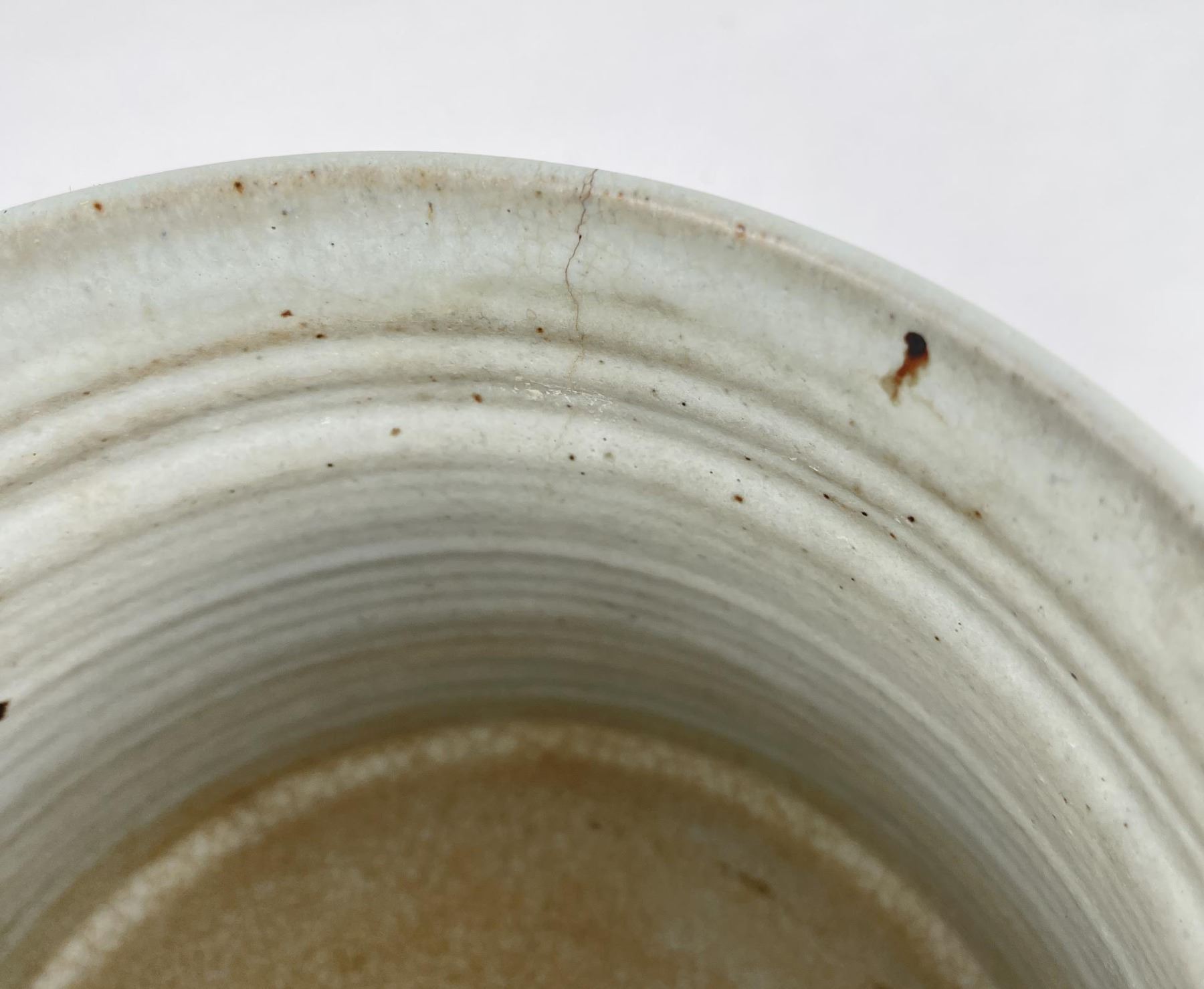 Signed as shown. 6.5" tall, 7" diameter. Cracked.