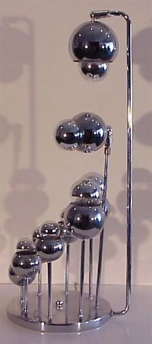 LAMP, a multiple-tiered chrome plated lamp, with matching bulbs, 32” high, working. $150/250