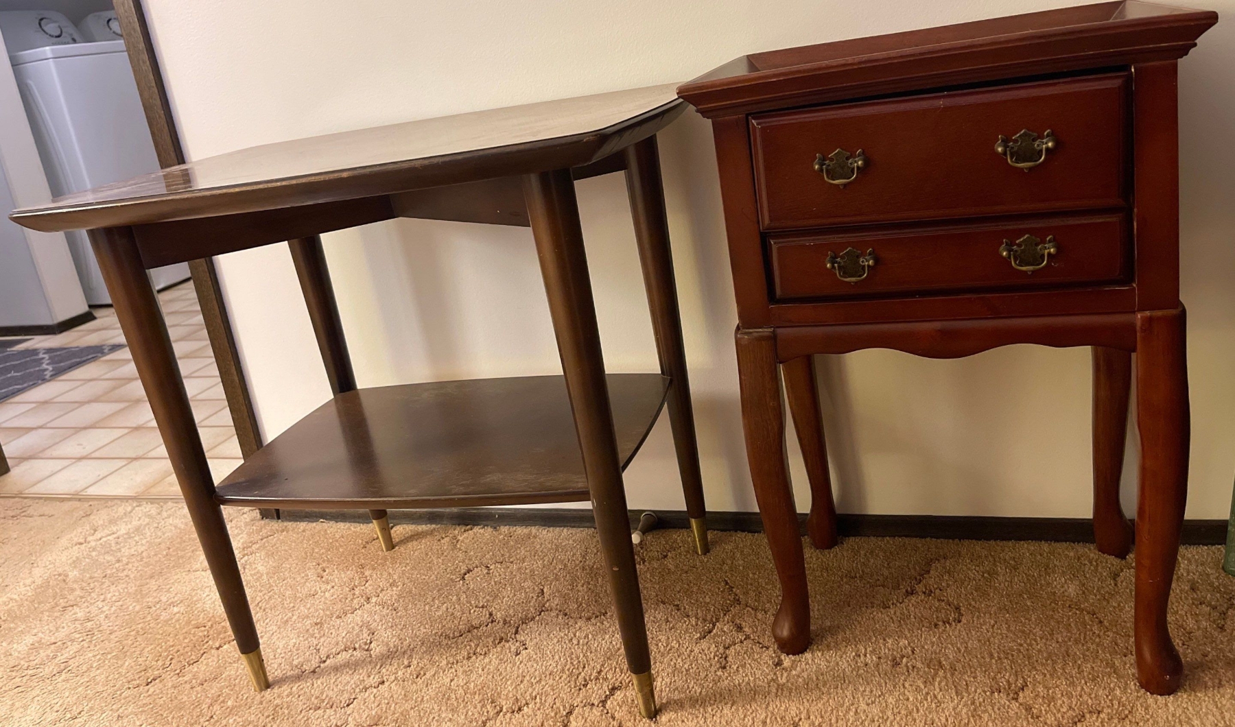 Mid Century Telephone Table 24x17x23 w/ Walnut Crawfoot End Table (Leg Broken)
