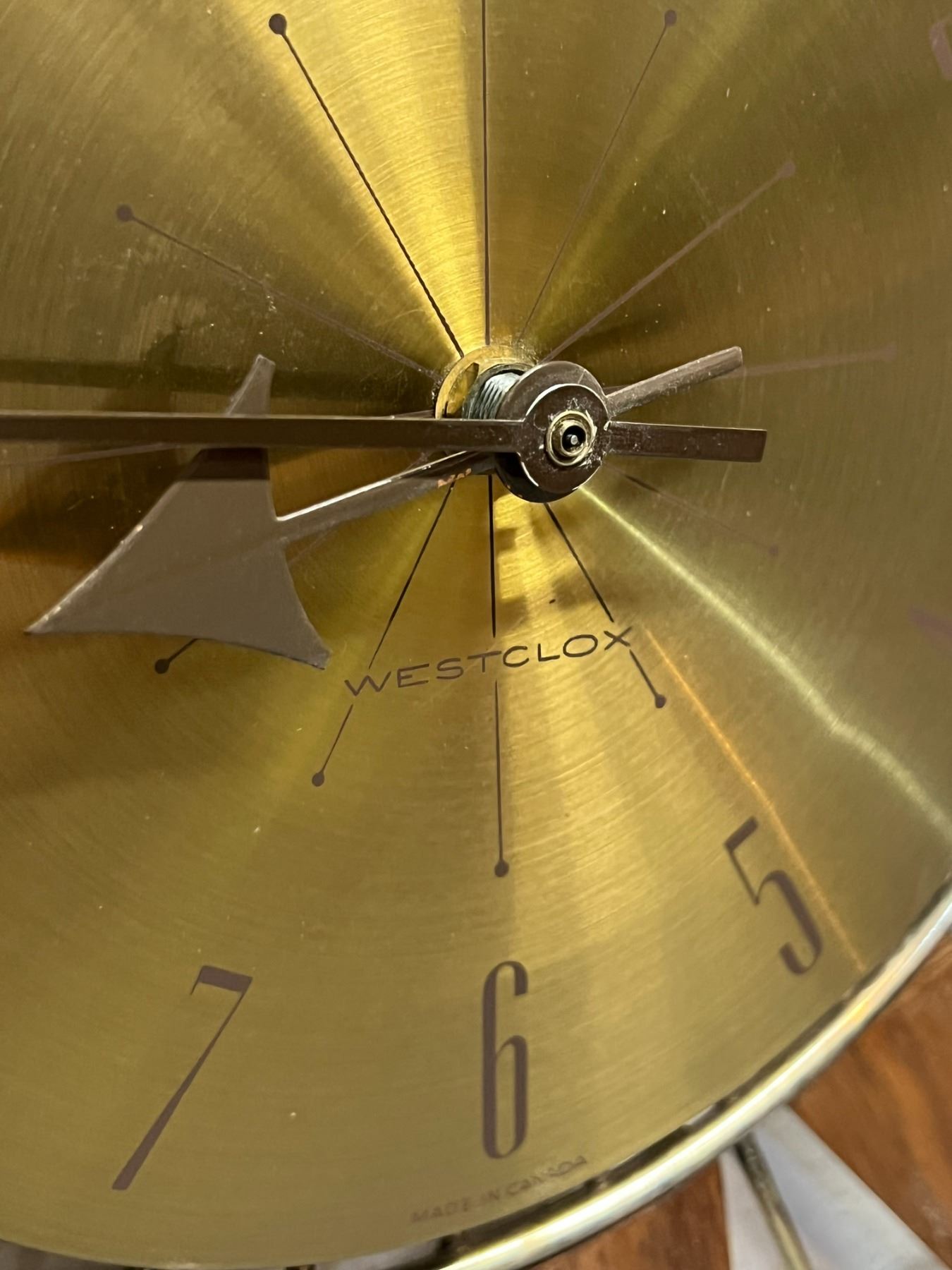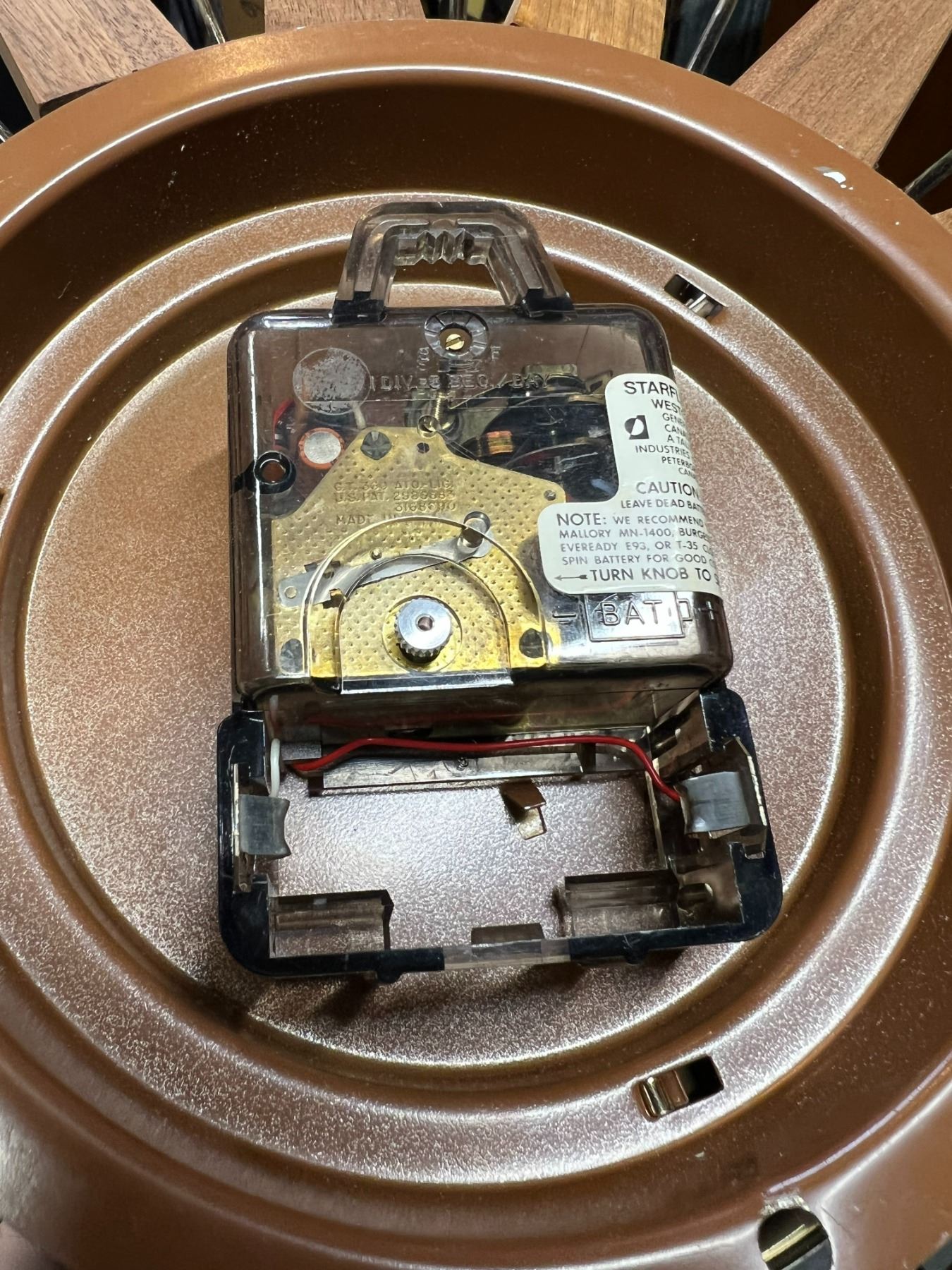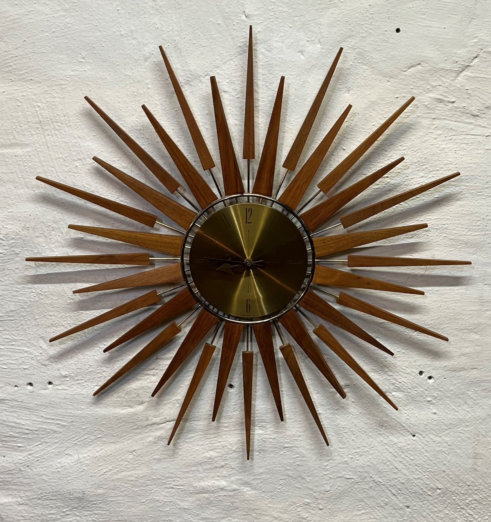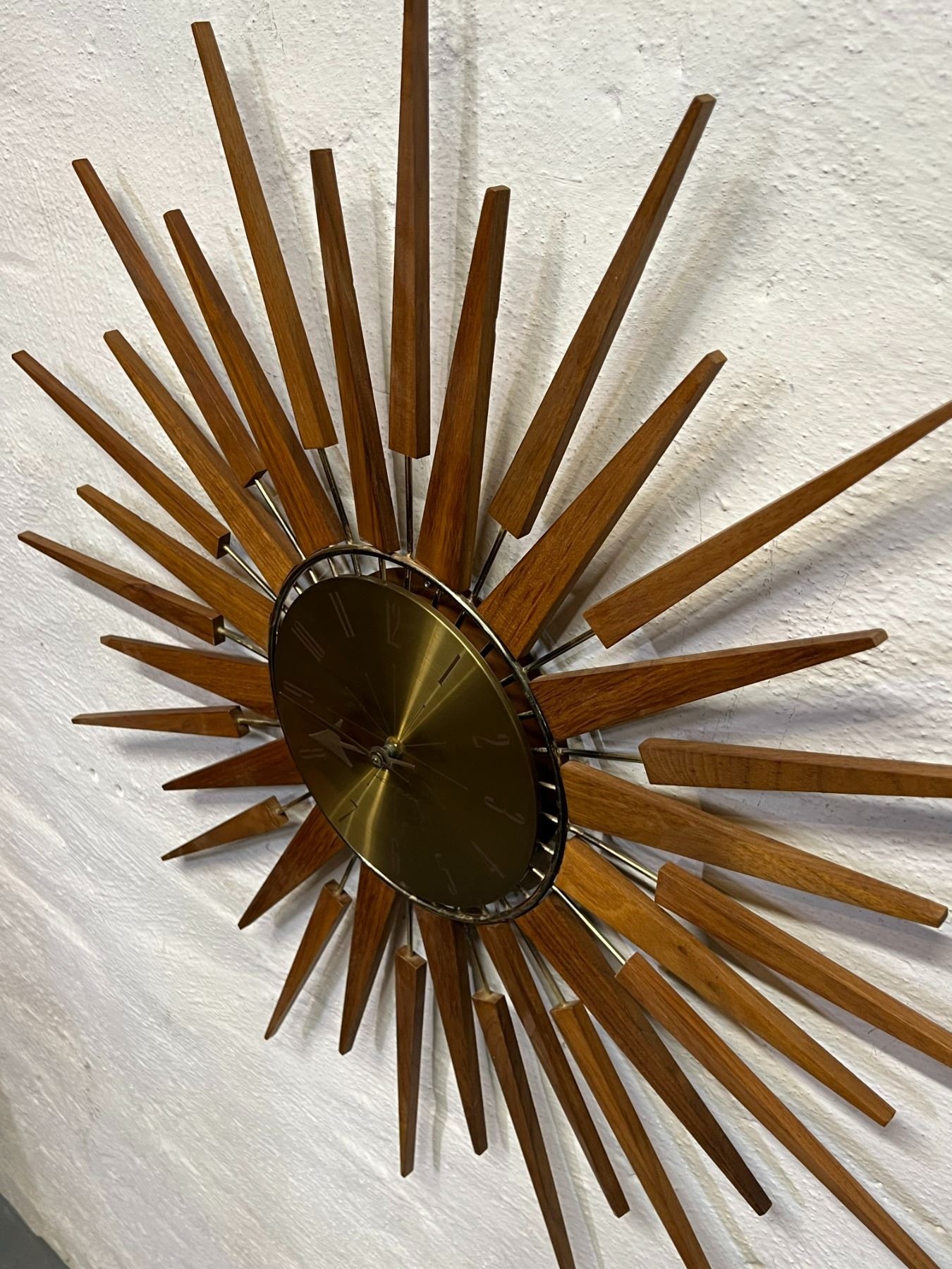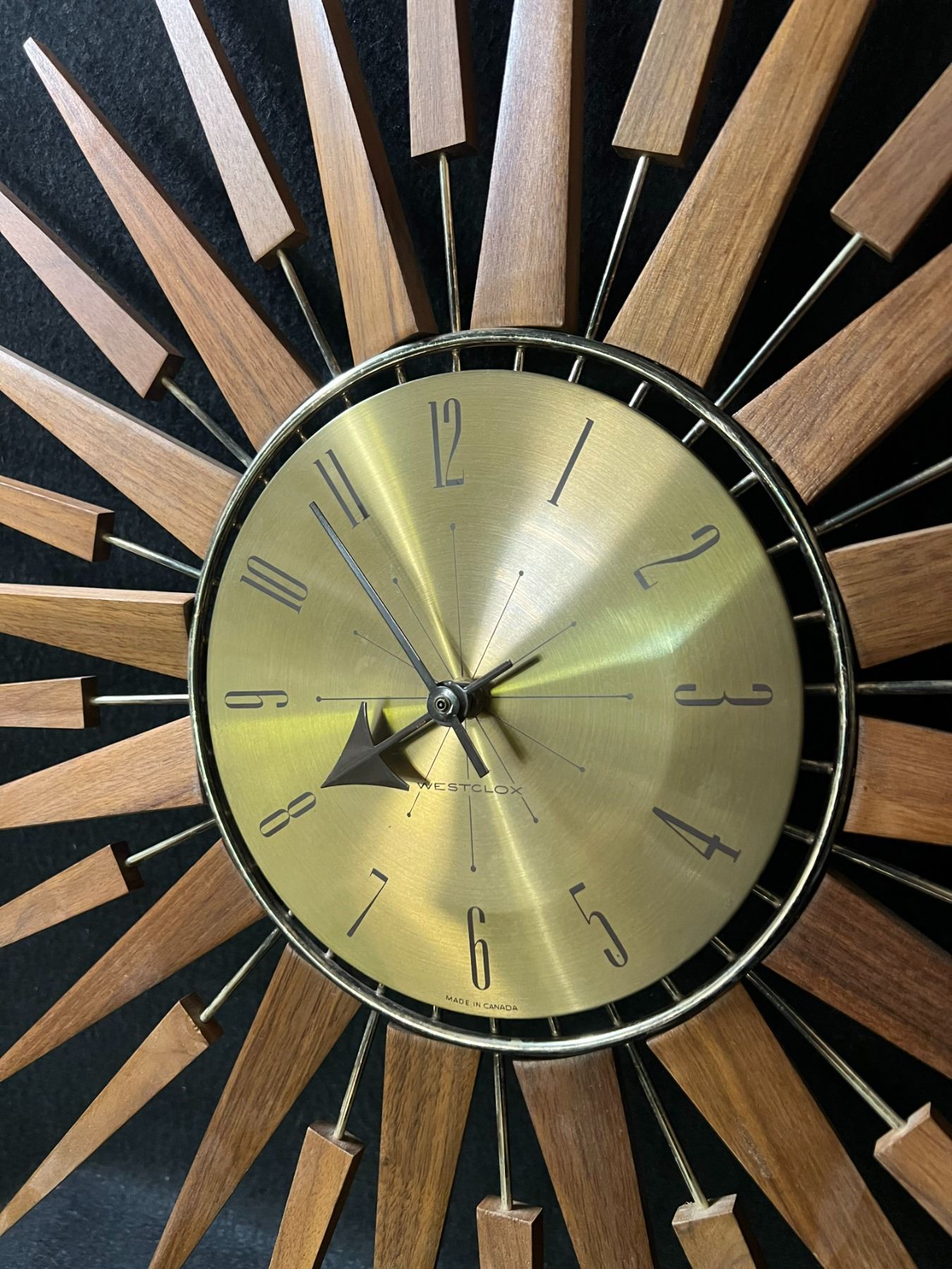 In Excellent overall condition. Not tested. Mid Century Westclox BATTERY OP Starburst Sunburst Wall Clock 26"