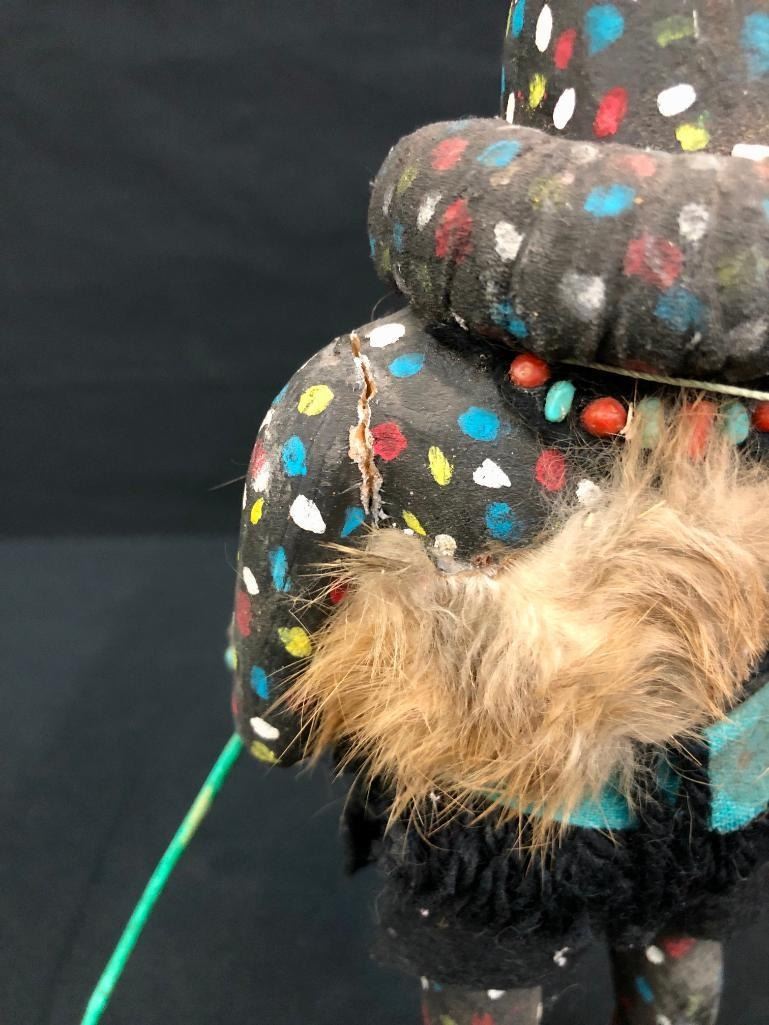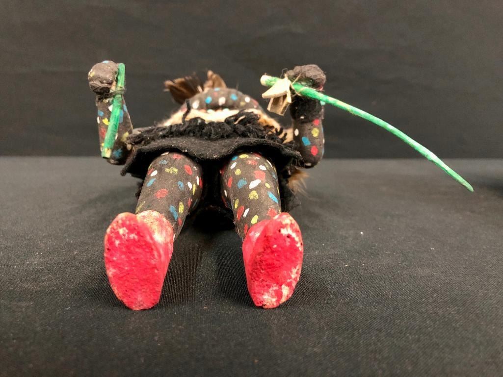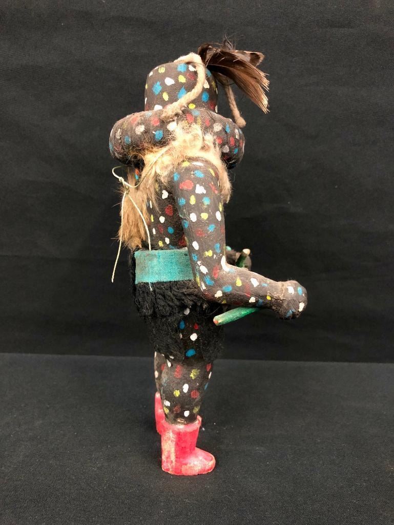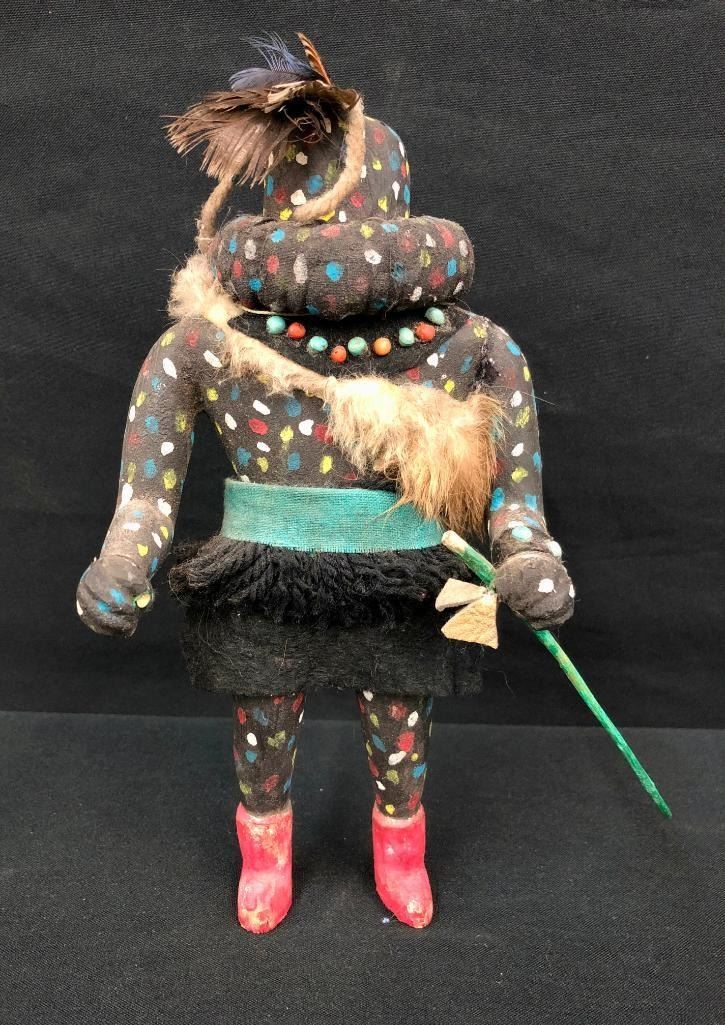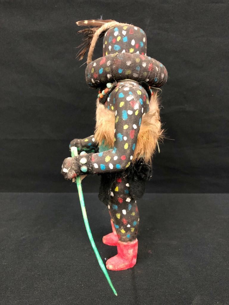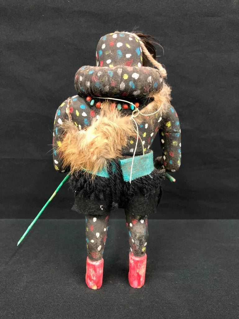 For sale in this lot is a Zuni Fire God (Shulawitsi) kachina. This handmade, hand-painted kachina has fine details. MAKER: Unmarked . APPROX AGE: Circa mid-century. SIZE: 4 inches wide x 8-1/2 inches tall. CONDITION: Pretty good for its age, some wear expected. Please look closely at the pictures as they are an important part of our description and are hereby incorporated into the description, specifically with regards to condition. SHIPPING: There will be a $10 handling / packaging fee for shipping this lot. The actual cost of postage will be added on top of that. BUY IT NOW: If you would like to buy this item now, without waiting for the auction day to bid on it, we do offer this option (which is available up to 48 hours before the actual auction starts). The “Buy it Now†price is the high estimate of this lot (plus applicable fees and the Buyer's premium is discounted to 10% when using the Buy it Now option). If you would like to exercise this option, you must contact us by email (or phone as long as you talk to someone live). Reference this lot number and your intention to "Buy it Now."
