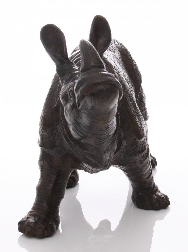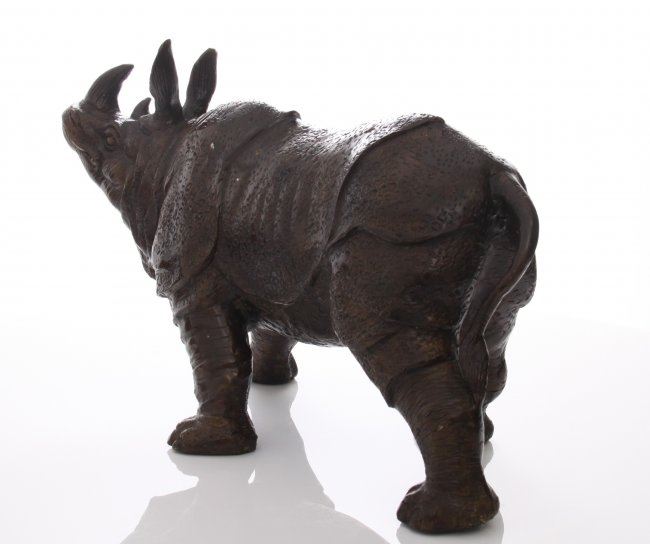 Mid Century bronze Rhinoceros, with fine details throug