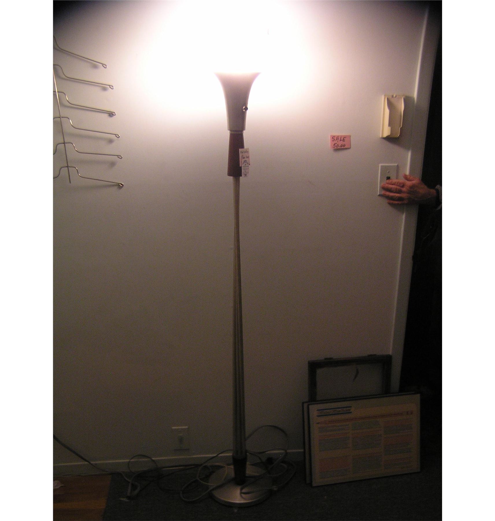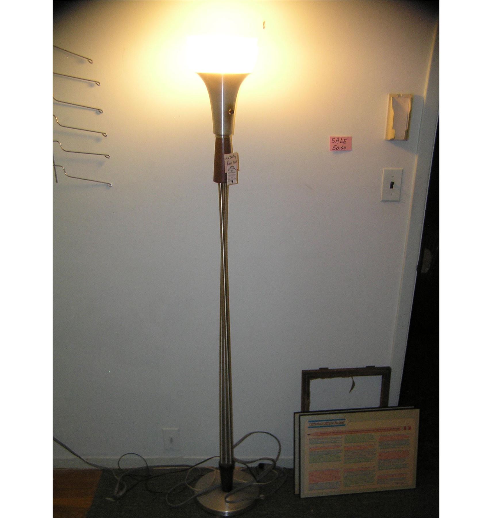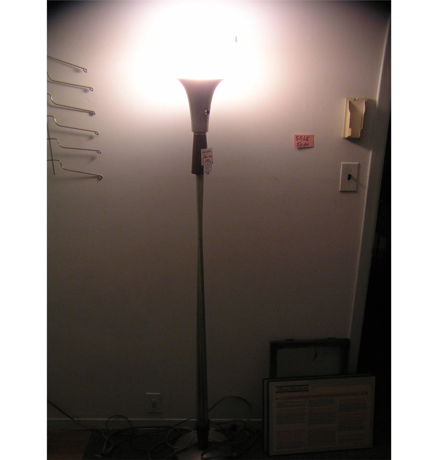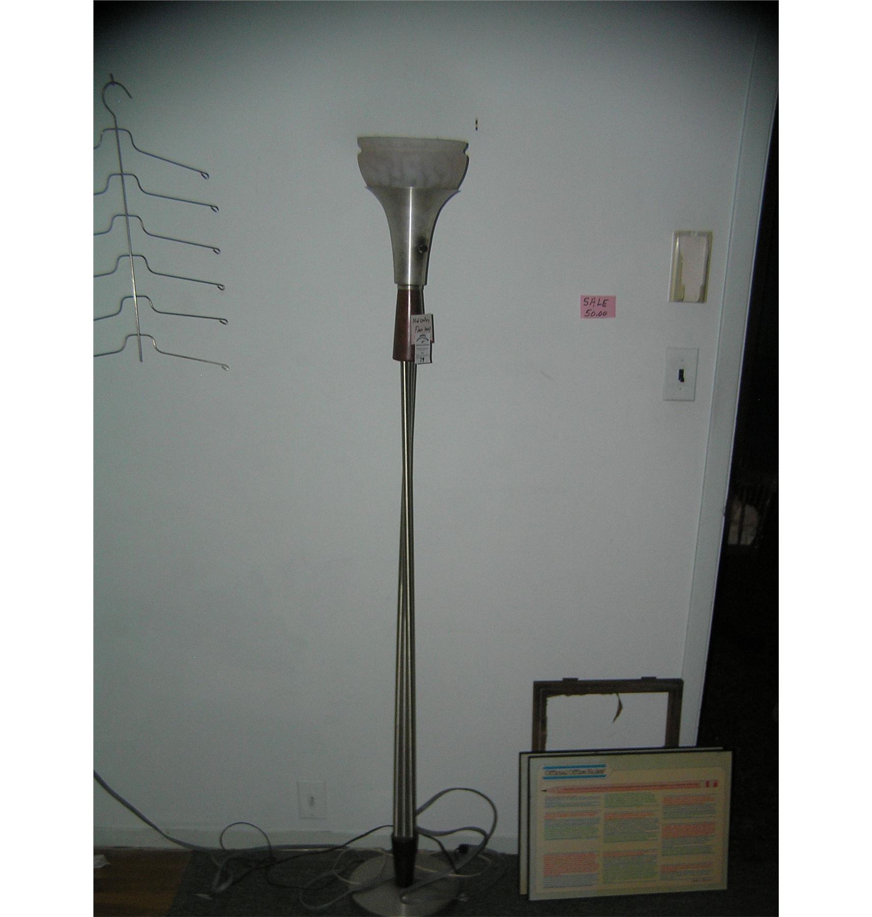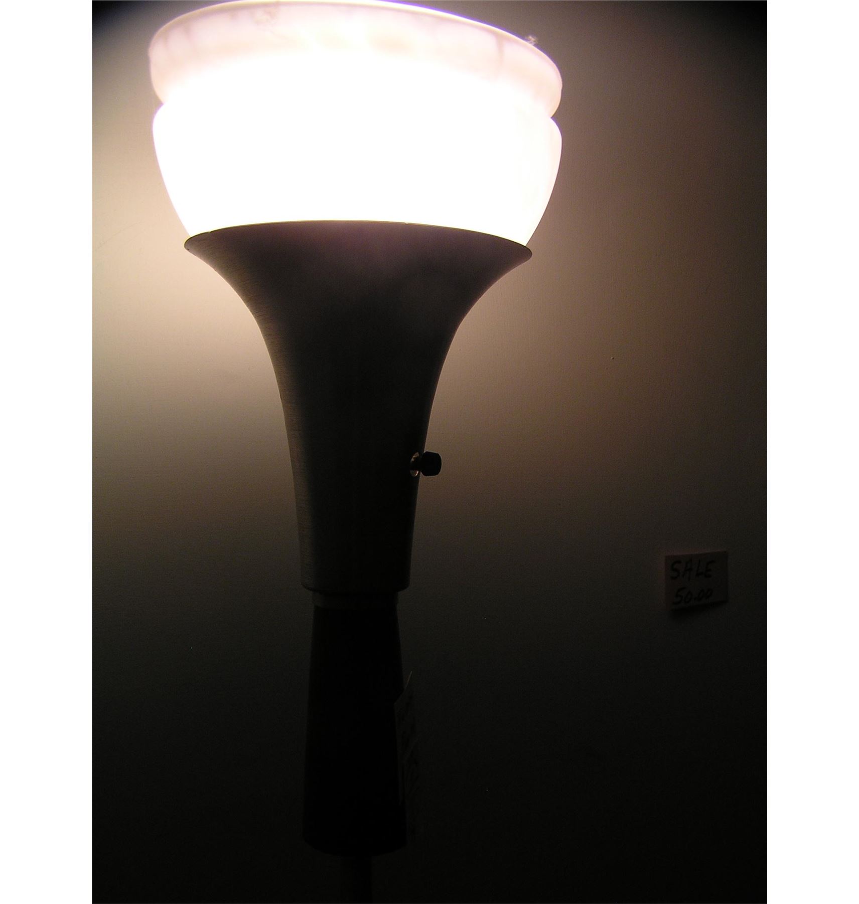 Mid Century walnut and aluminum torche lamp excellent working condition est. value $200.00-$225.00