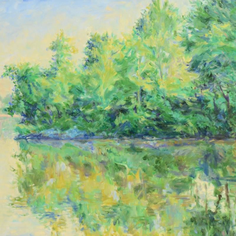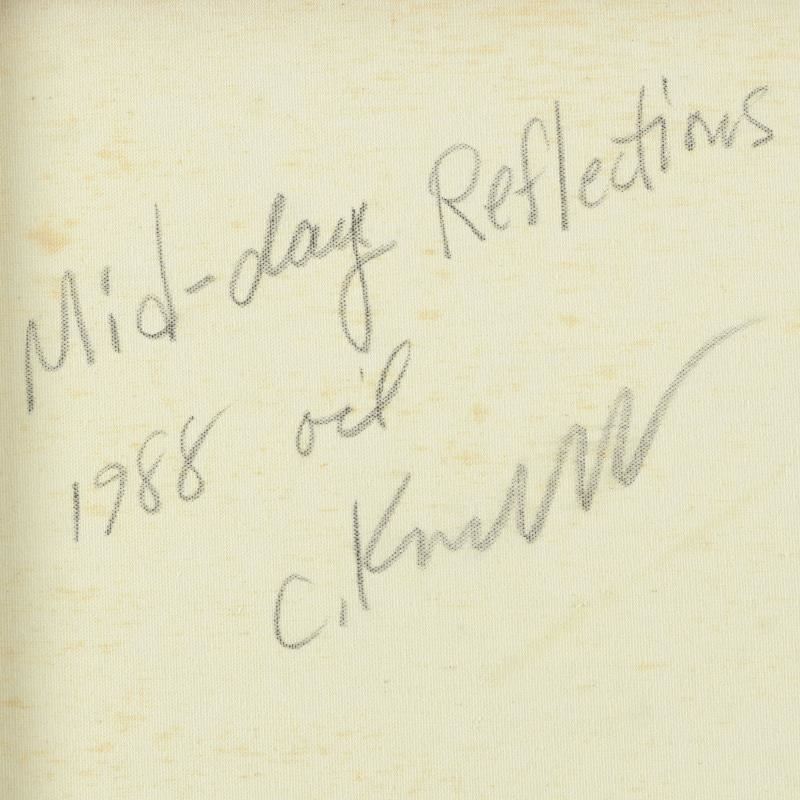 "Mid Day Reflections" is an original oil painting on stretched canvas by Charles Knecht, hand signed by the artist. This piece is titled inverso and dated 1988. Includes Letter of Authenticity. Measures approx. 36" x 24" (image).
