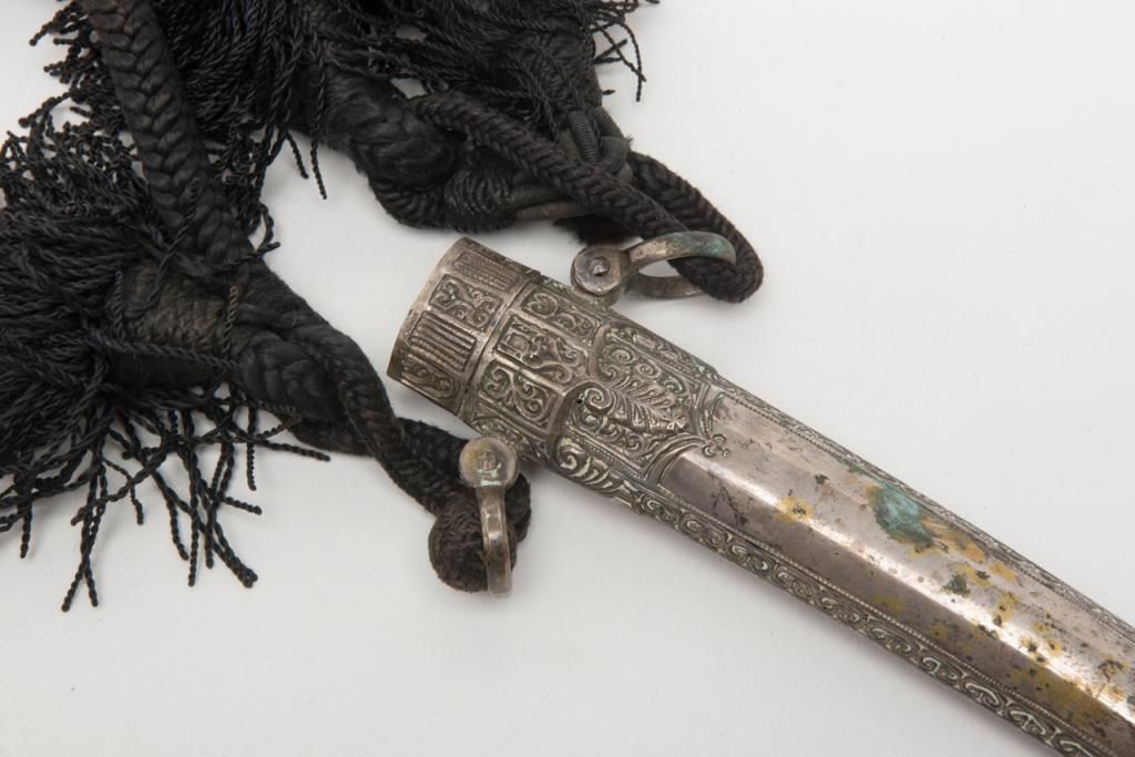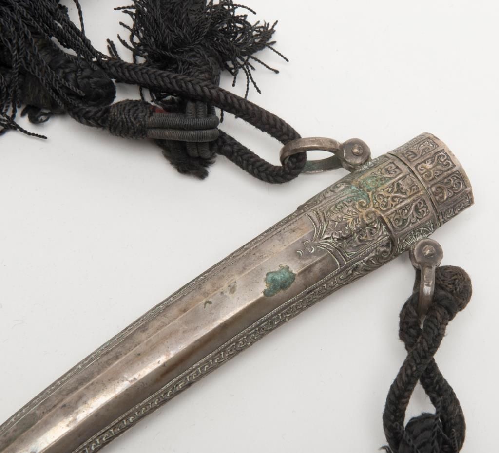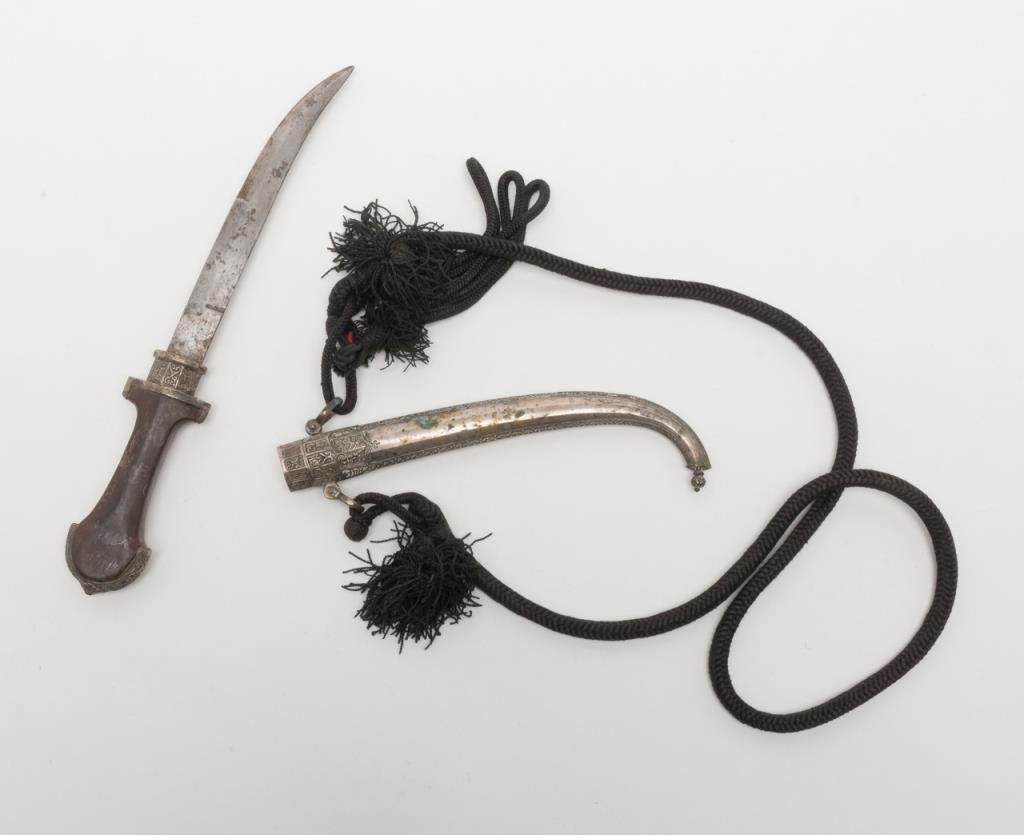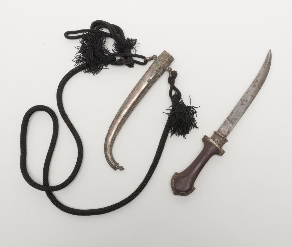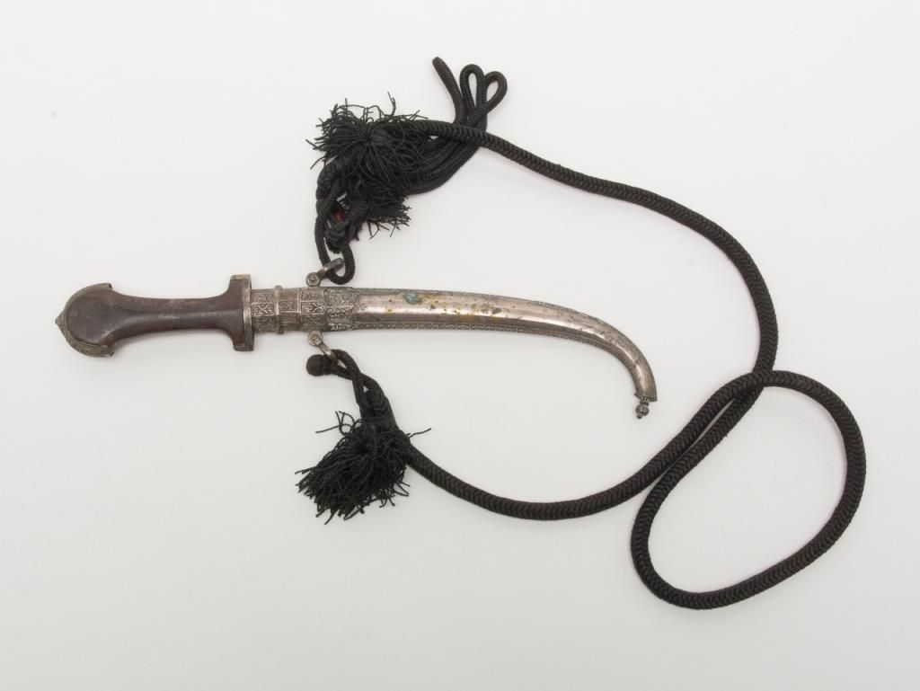 Mid-Eastern Jambaya with silver mounts and cord hanger. Est.: $150-$300.