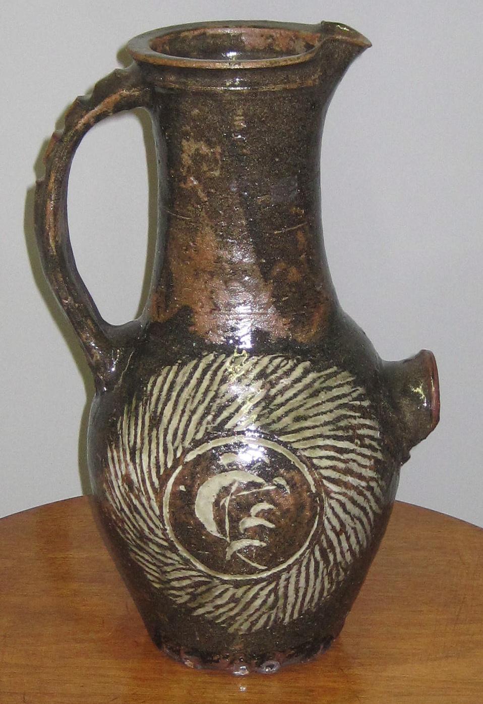 Mid-century Japanese Ceramic Jug, glazed, large, w/symbols, 17x8"