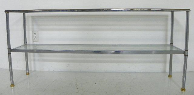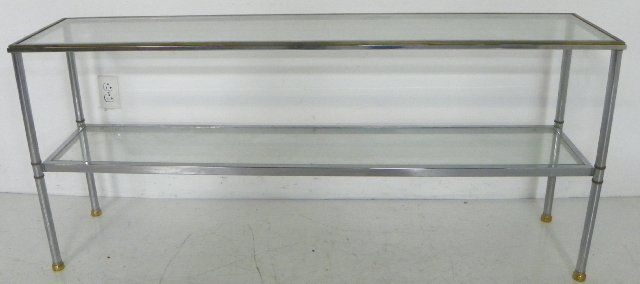 With glass shelves. Approx. 27" H x 60" L x 13" D. From Sutton Place, NYC estate. Please read our terms of sale.