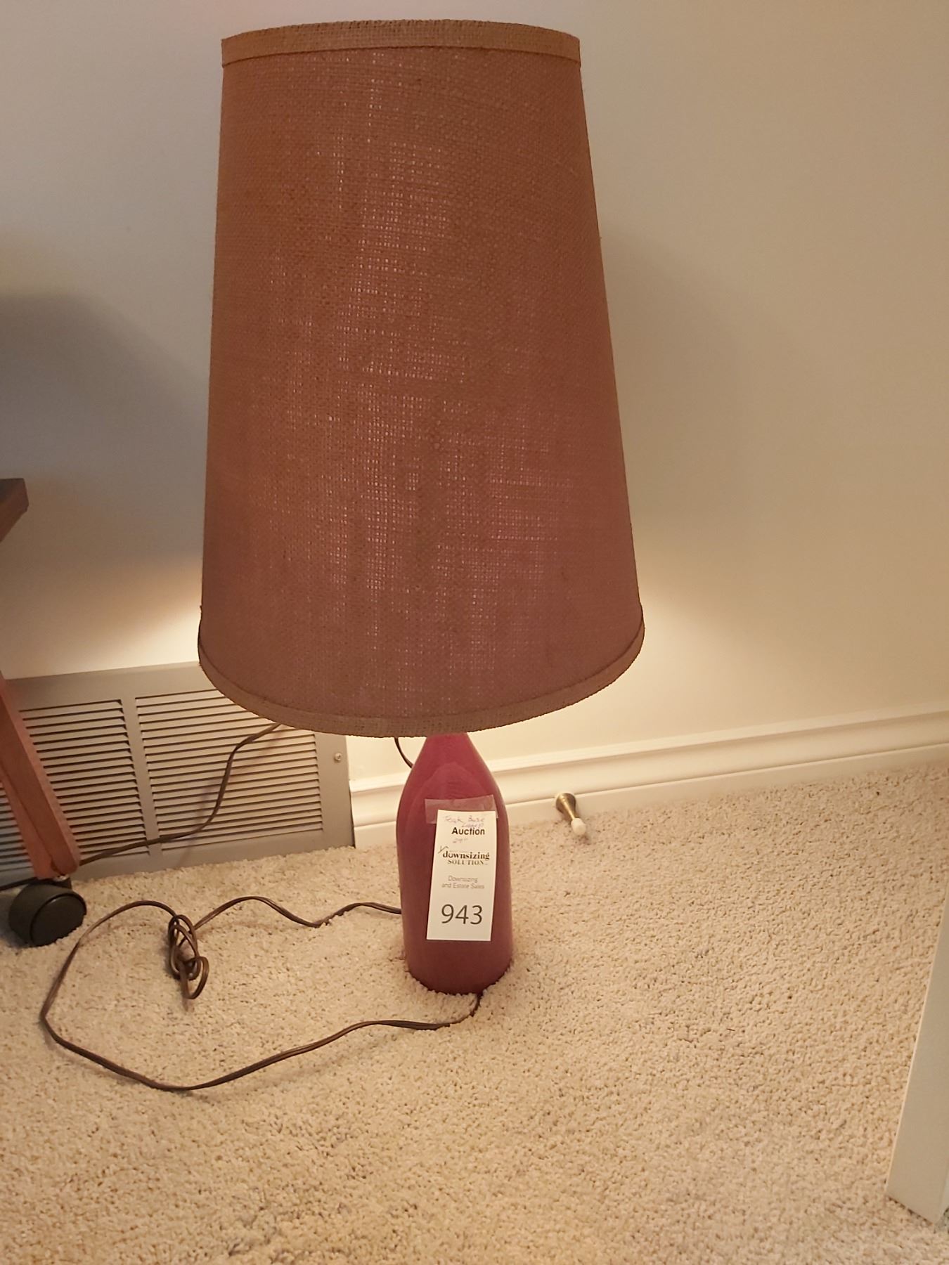 Mid century lamp, woven shade, teak base. Pickup 9am