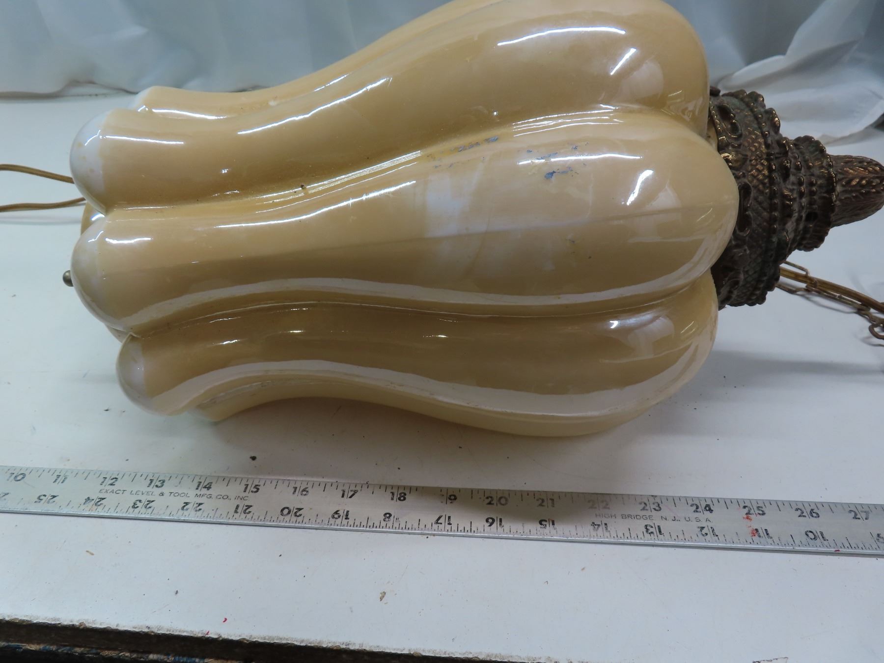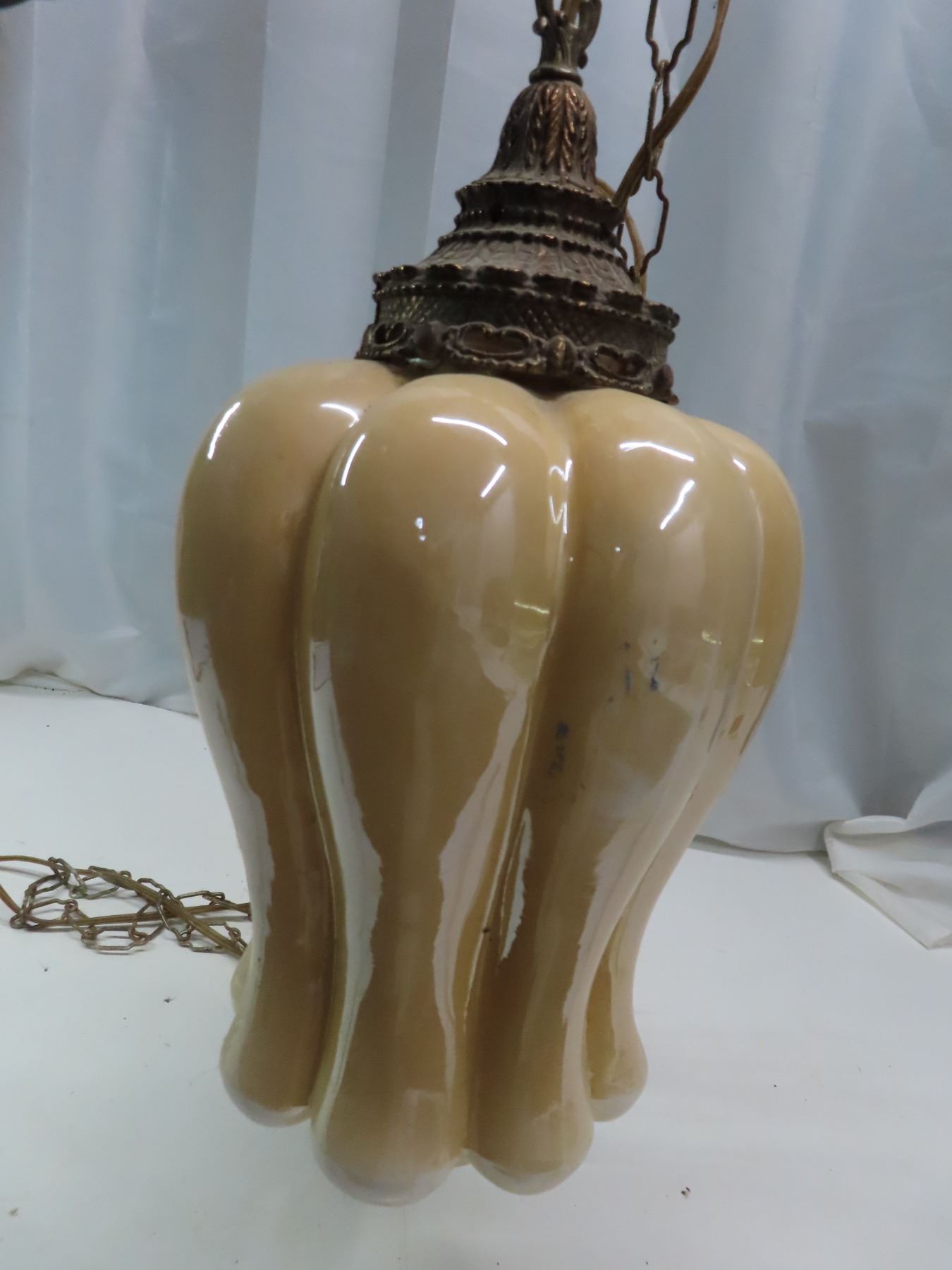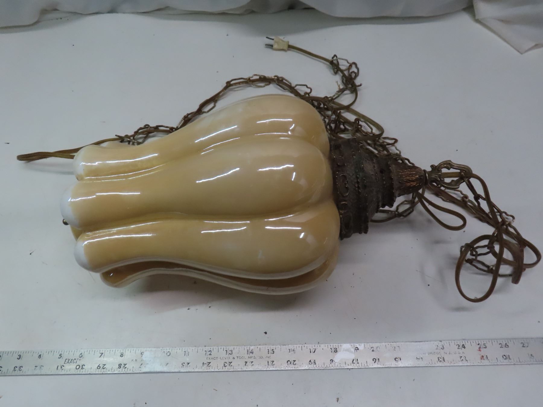 Mid century swag lamp peach lustre art glass globe hollywood regency- champagne colour -with chain