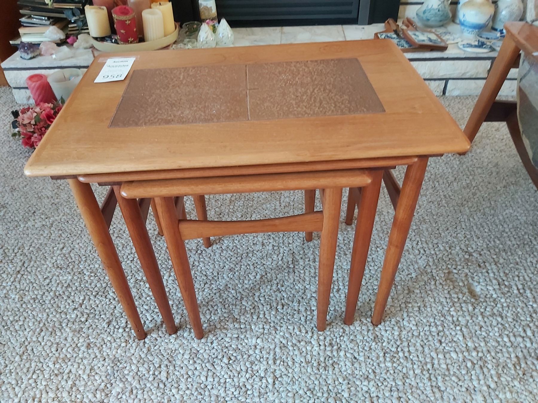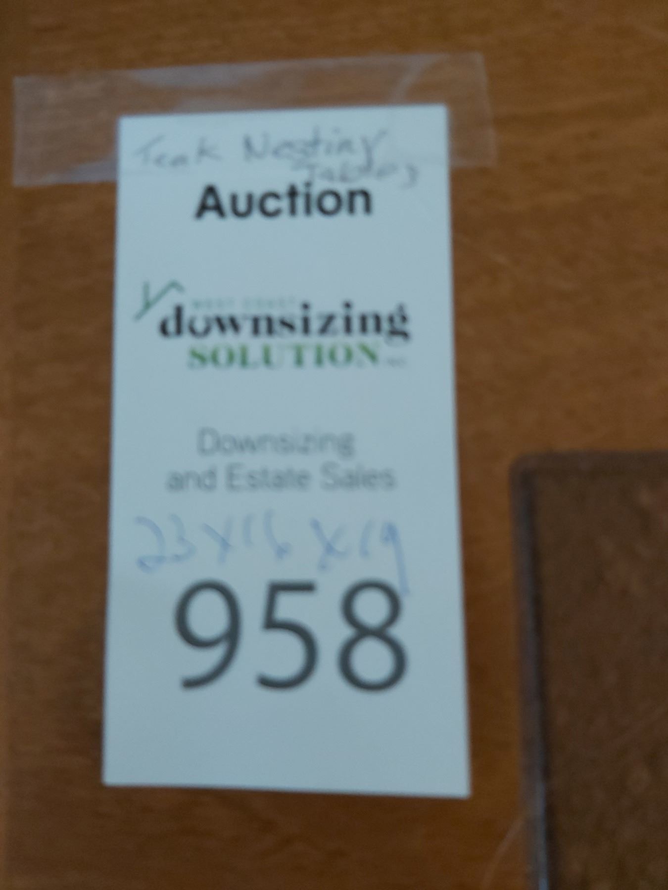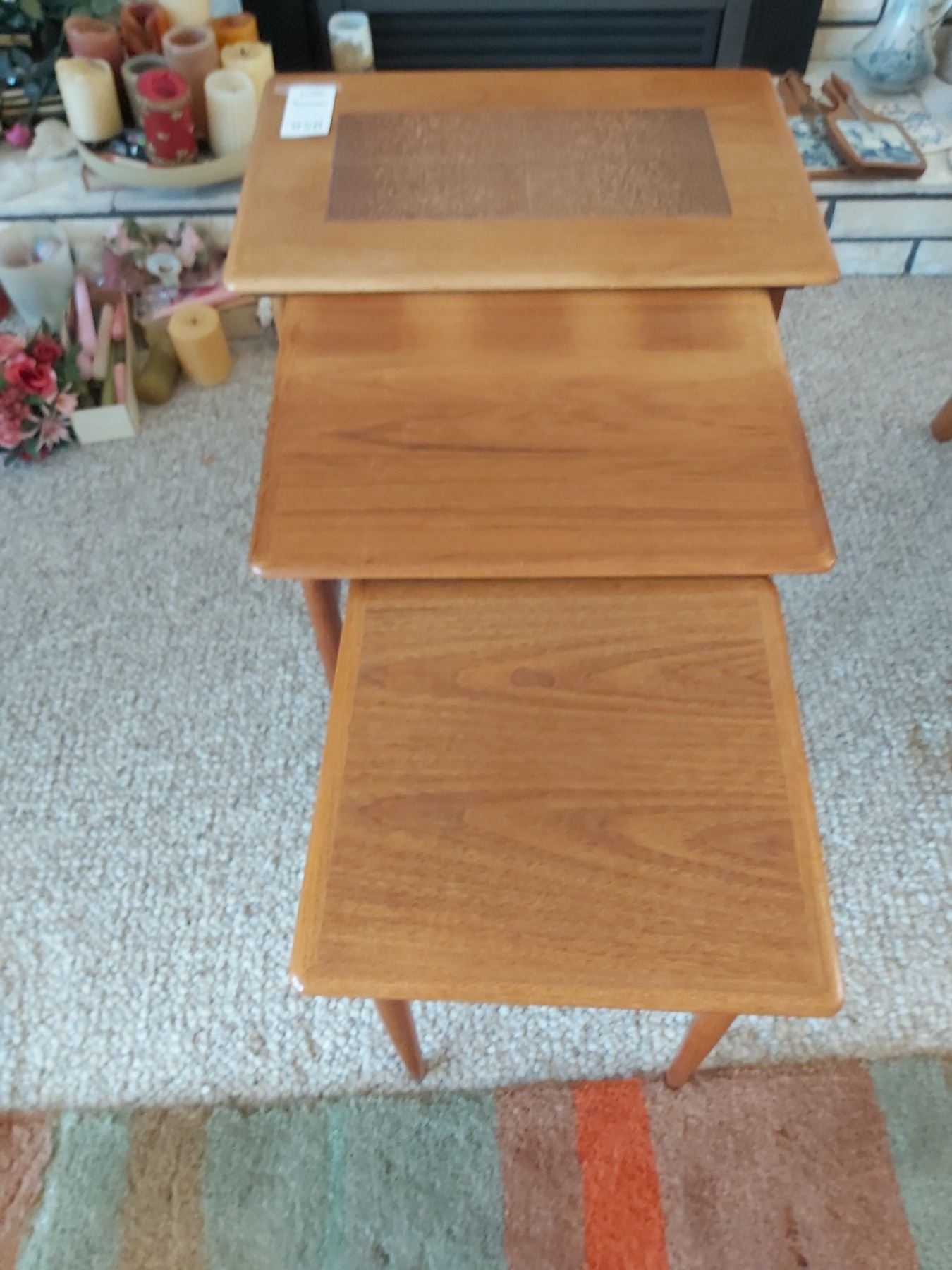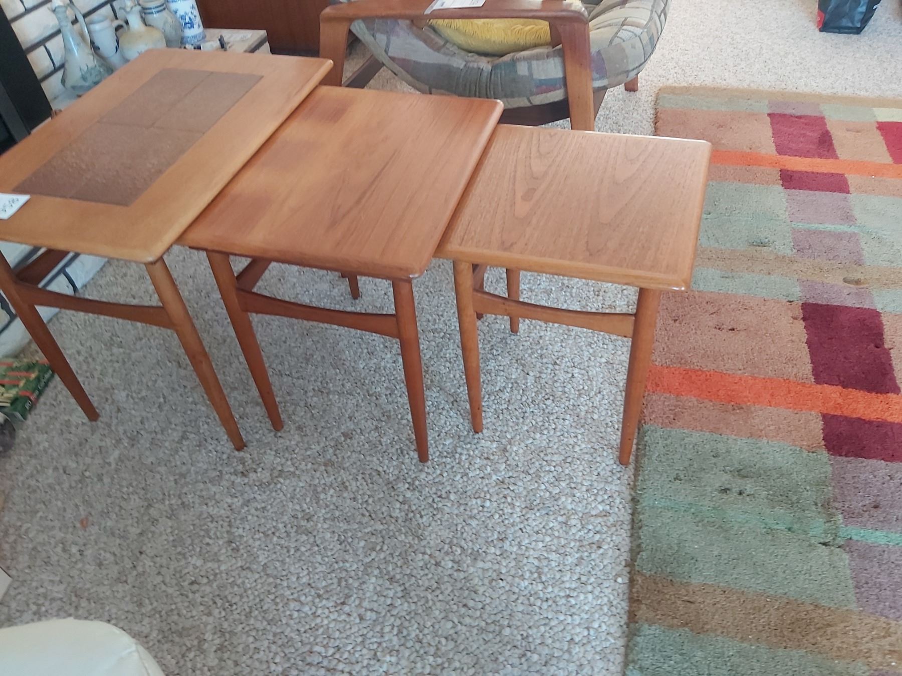 Mid century teak nesting tables. 23x16x19. Pickup 9am