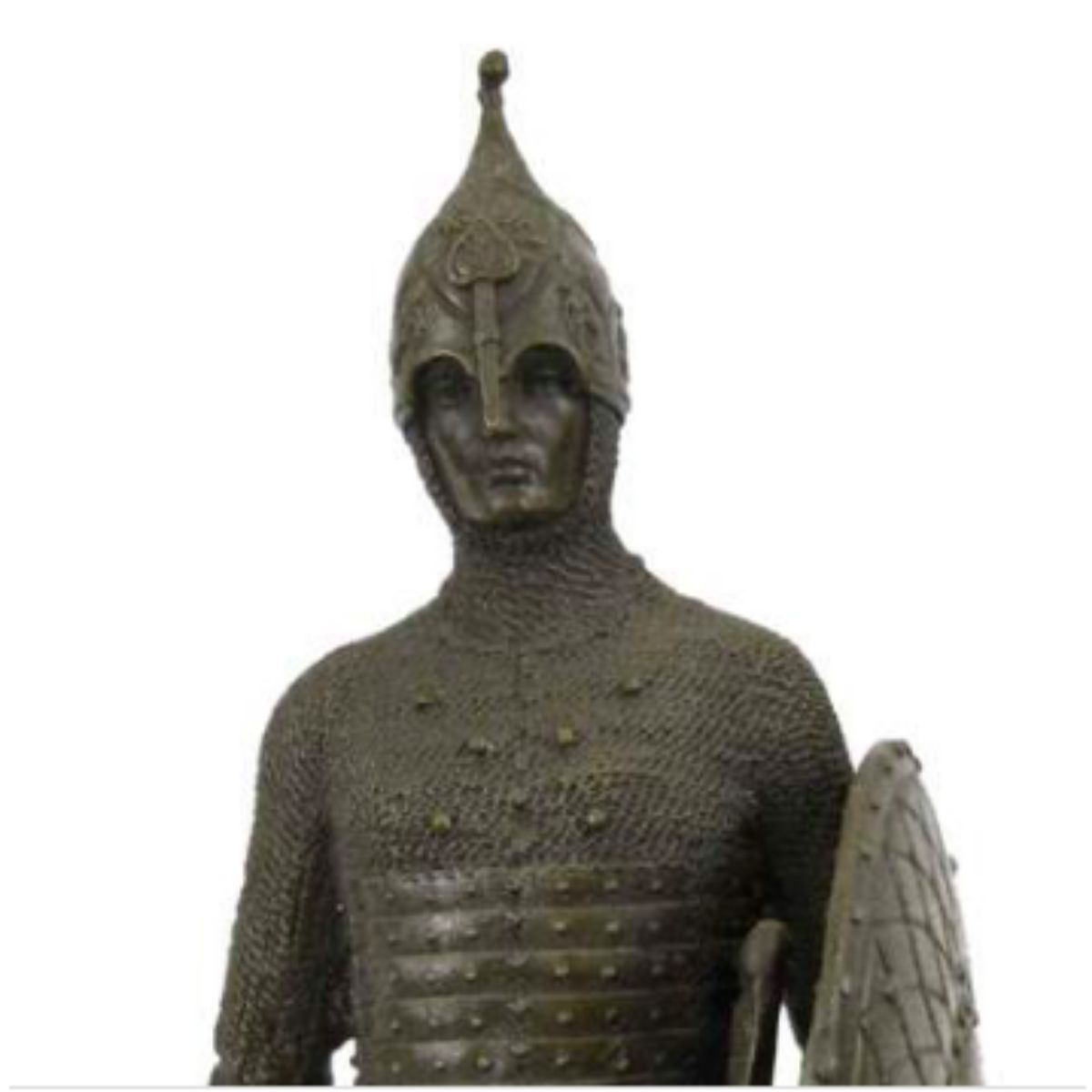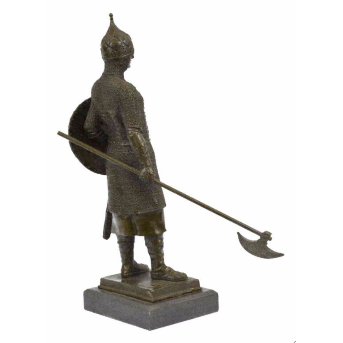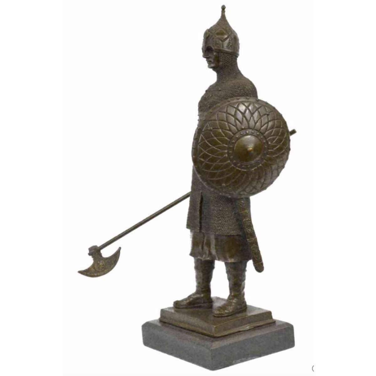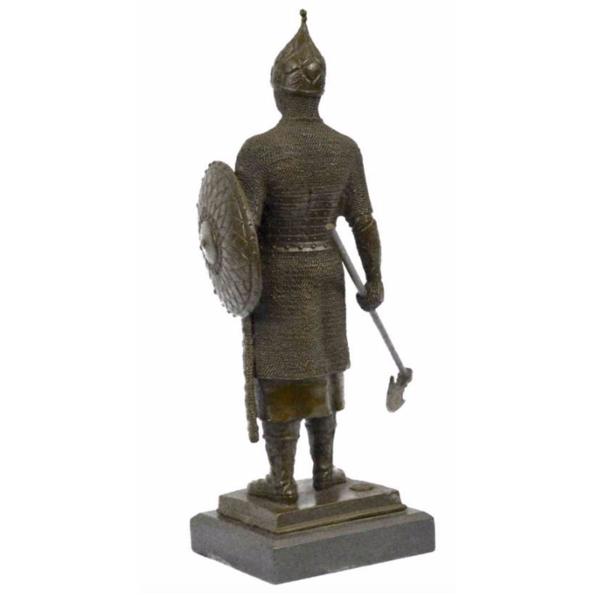 Middle Ages Medieval Knight, Warrior Sculpture, Statue. Lost wax casting method bronze, with brown patina, mounted on marble base. 15" H X 11" W. 10 lbs.