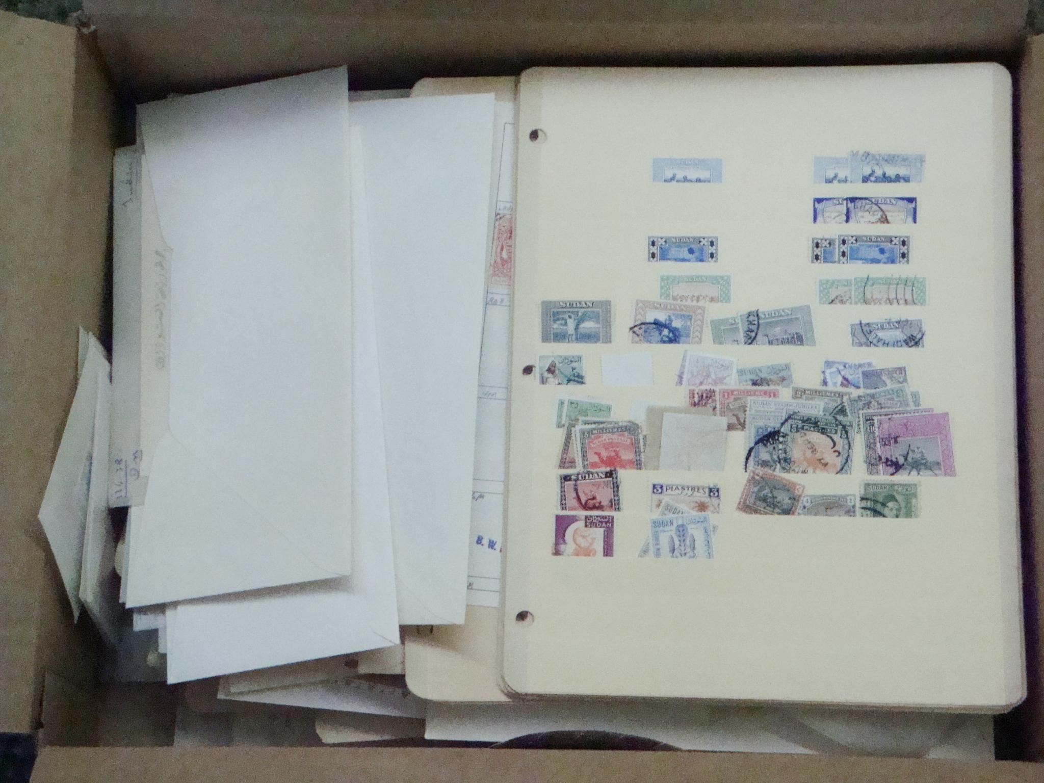 Very useful lot of Middle East Arab speaking countries with many (100) stamps, unused and used in glassines, on pages, on stockcards, in envelopes, even some covers. Wide range of material. Noticed better Iraq, Egypt, Saudi, Oman, etc. There is also some