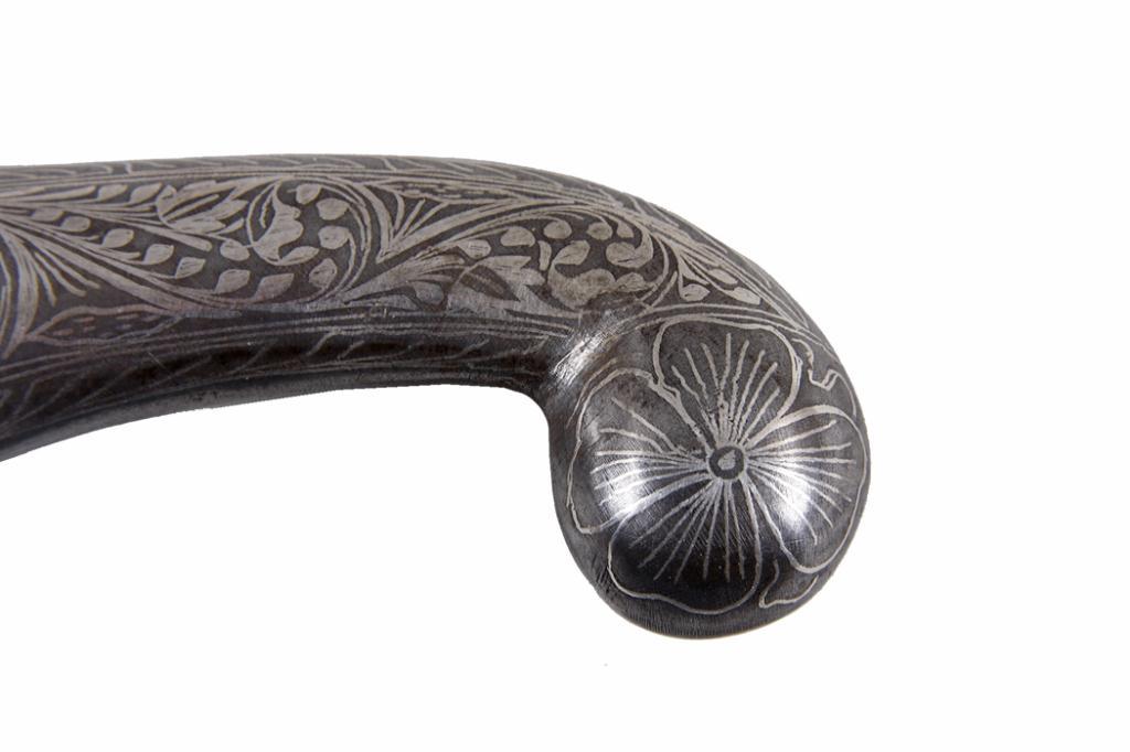 Middle Eastern Engraved Silver Knife Floral scrolling, measures 12 1/2" overall, blade is 6 1/2".Flo