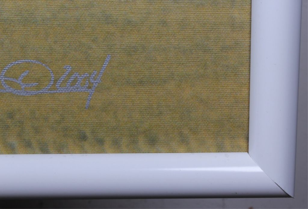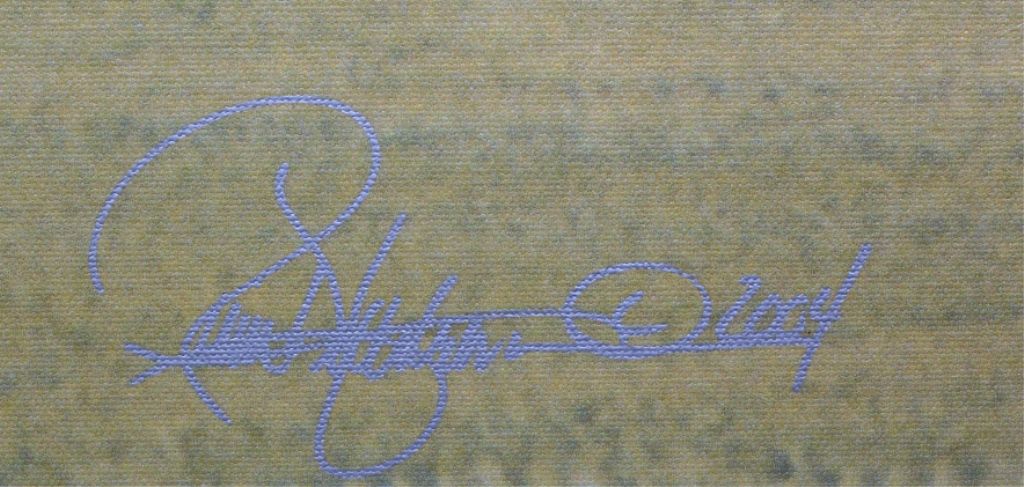 This piece was done in 2004 by Bozeman Montana Artist Rein and is Giclee Photographic print on canvas (endurachrome ink on fredricks cotton canvas). This is hand signed by the artist in silver oil pen i the lower right hand corner. The frame is 71.625"x48.325"