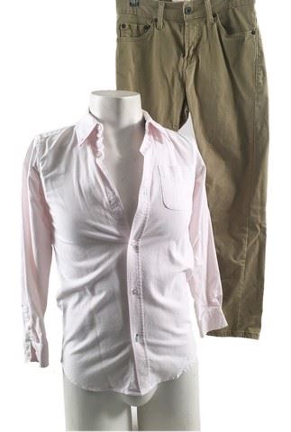 Rafe (Griffin Gluck) screen worn, hero, white long sleeve button front Oxford 'Children's Place' shirt, (size XL) and khaki jean style 'Levis' pants. (size 28 x 28)