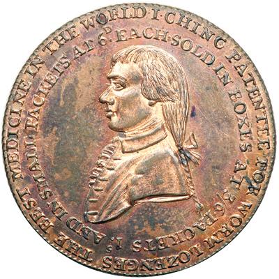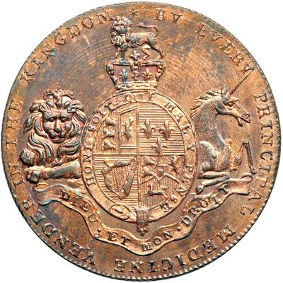 Middlesex. Ching's. Halfpenny, ND. D&H-282. Edge: Milled. Bust left Ching. Reverse: Royal arms, supporters, crest, and motto. NGC graded MS-64 Red & Brown.