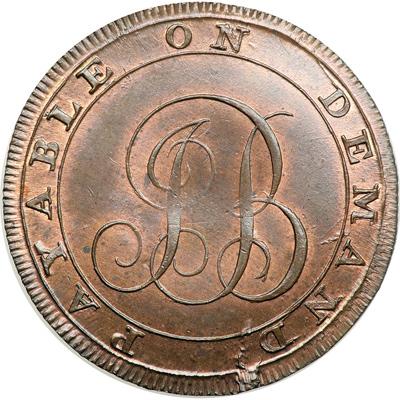 Middlesex. Foundling Fields. Halfpenny, 1795. D&H-305. Edge: Milled. Lamb. Reverse: Cypher I B. NGC graded MS-66 Brown.