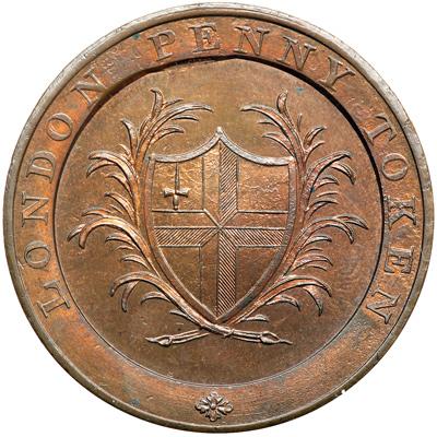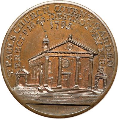 Middlesex. Kempson's. Penny, ND. D&H-52. Edge: Plain. Kempson's Series of London Buildings. St. Pauls Church Covent Garden Erected. 1640. Destroyed by Fire 1795. NGC graded MS-65 Red & Brown.