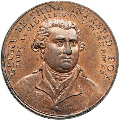 Middlesex. Political and Social Series. Penny, ND. D&H-223. Edge: MANUFACTURED BY W. LUTWYCHE BIRMINGHAM. X.X. Charles J. Fox. Reverse: Legend within wreath. NGC graded MS-64 Red & Brown.